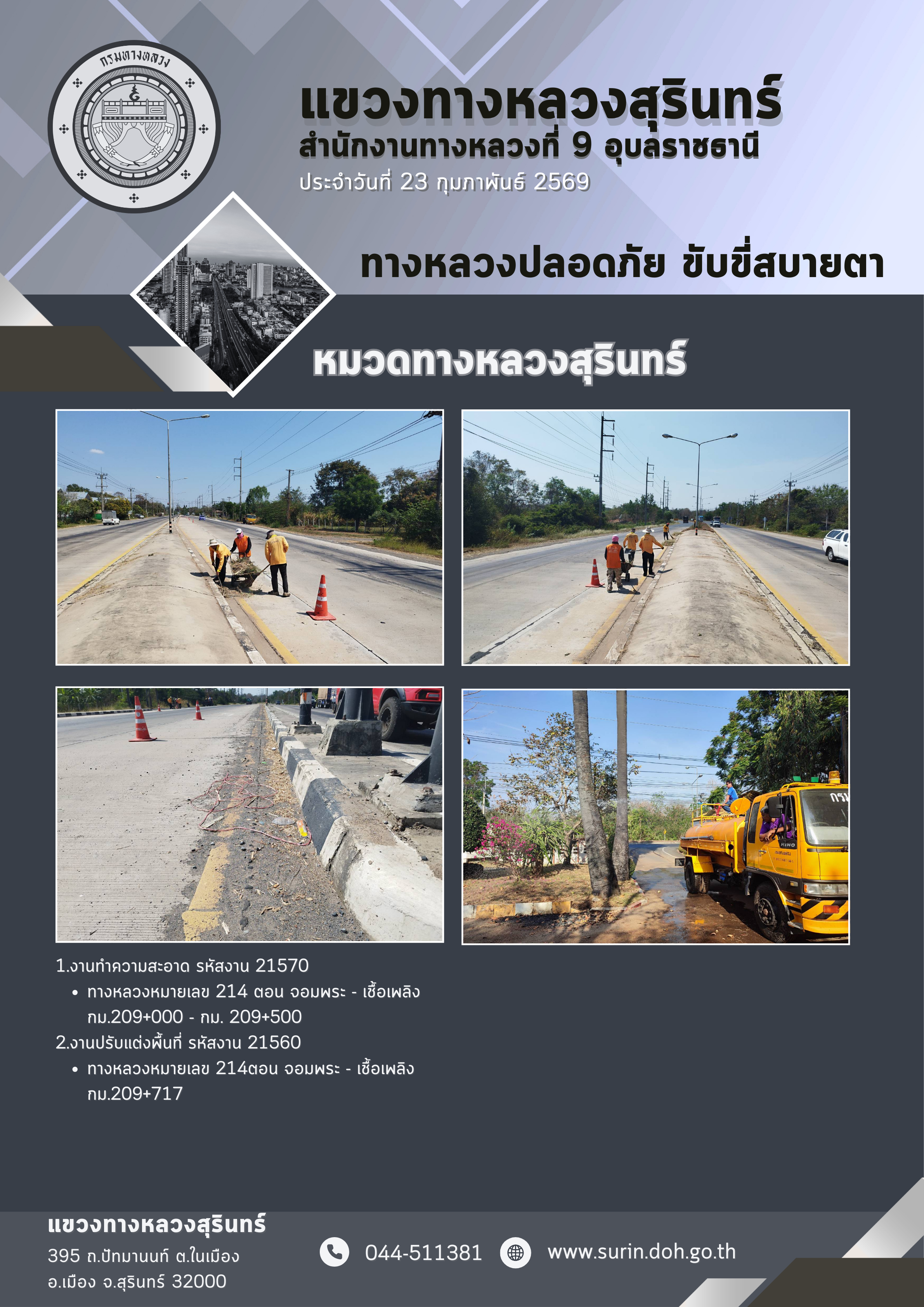 ข้อมูลข่าว : ทางหลวงปลอดภัย ขับขี่สบายตา 23 กุมภาพันธ์ 2569