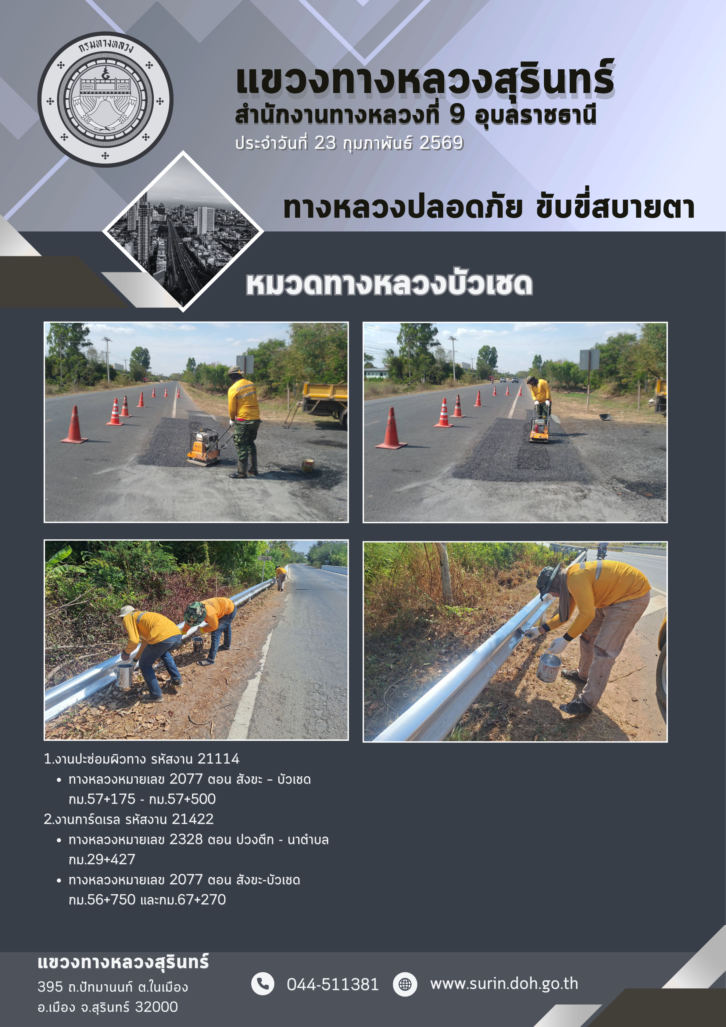 ทางหลวงปลอดภัย ขับขี่สบายตา 23 กุมภาพันธ์ 2569