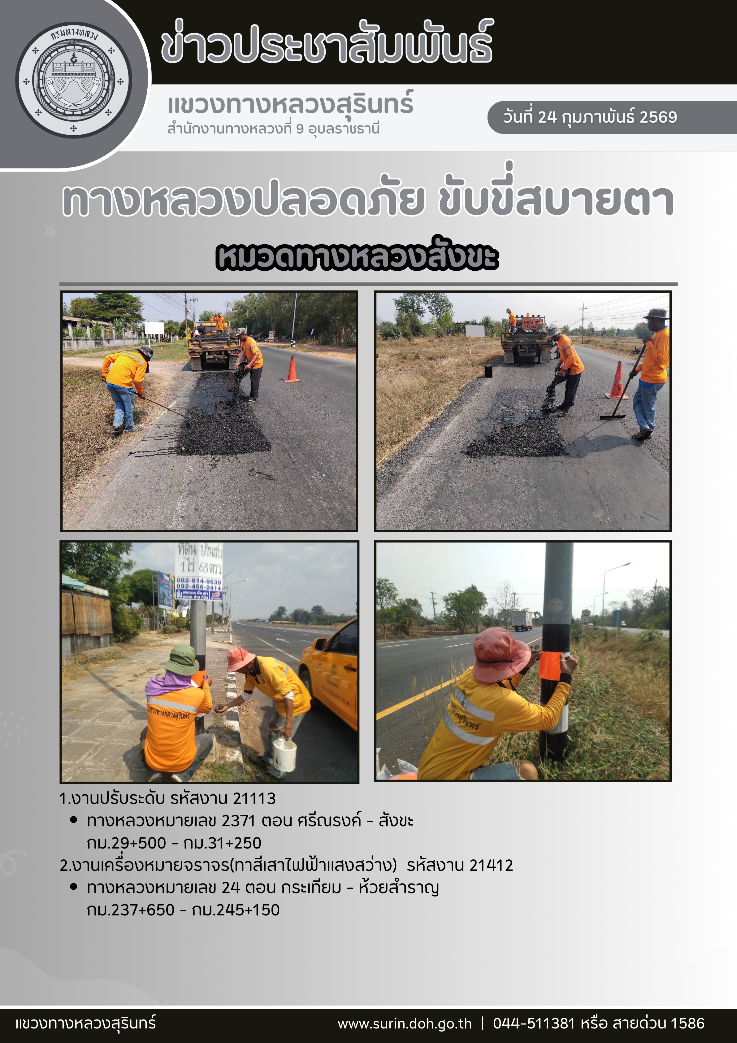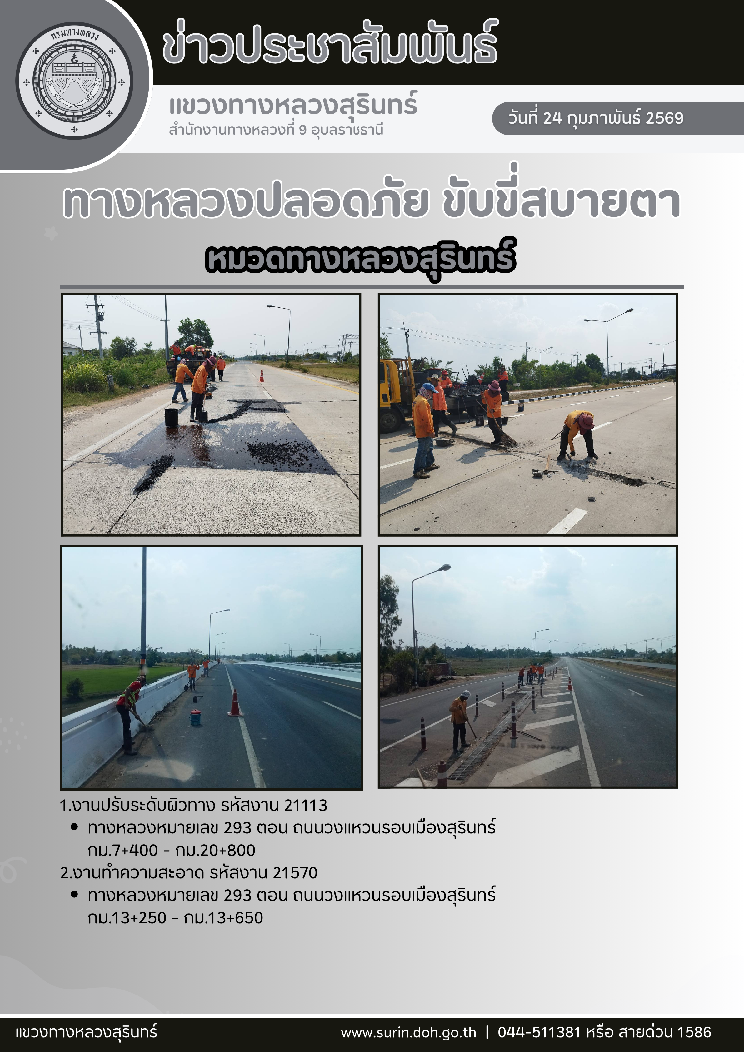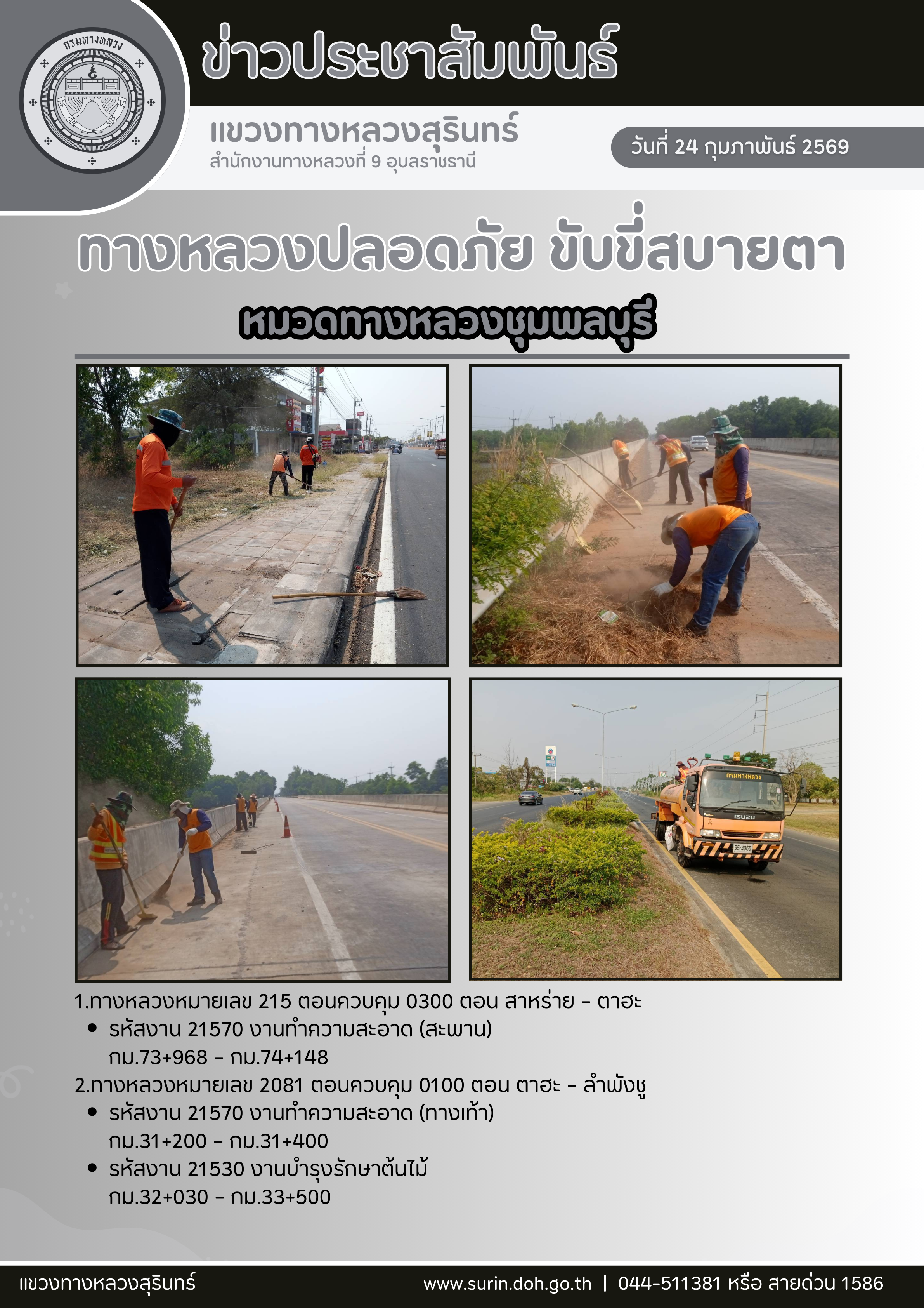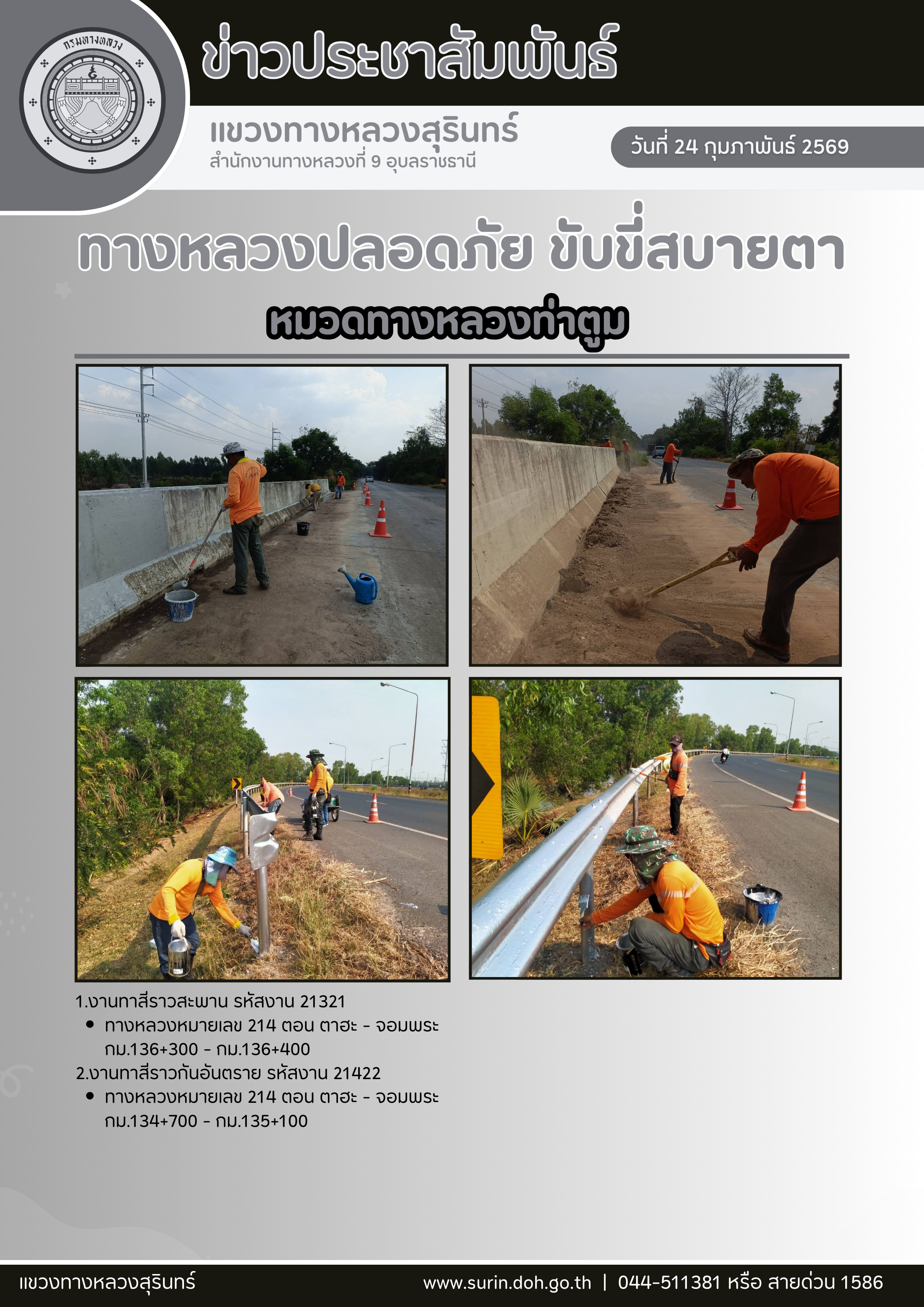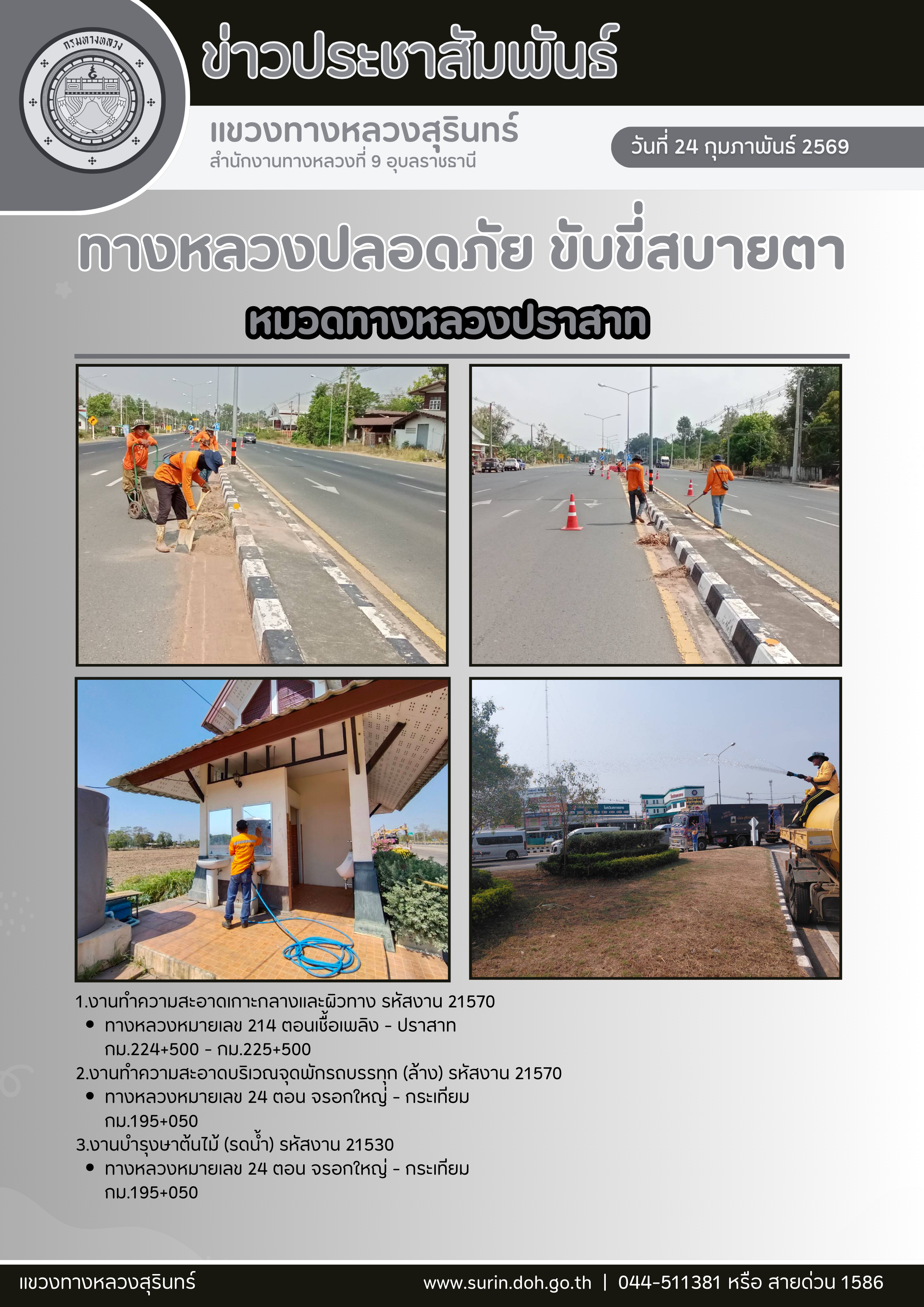 ข้อมูลข่าว : ทางหลวงปลอดภัย ขับขี่สบายตา 24 กุมภาพันธ์ 2569