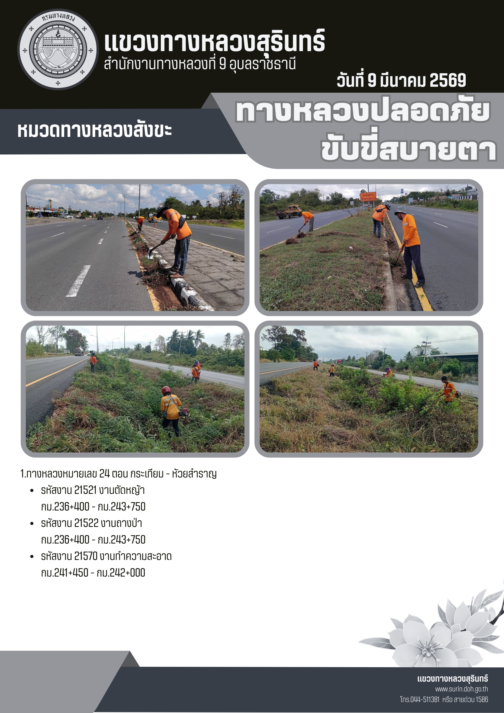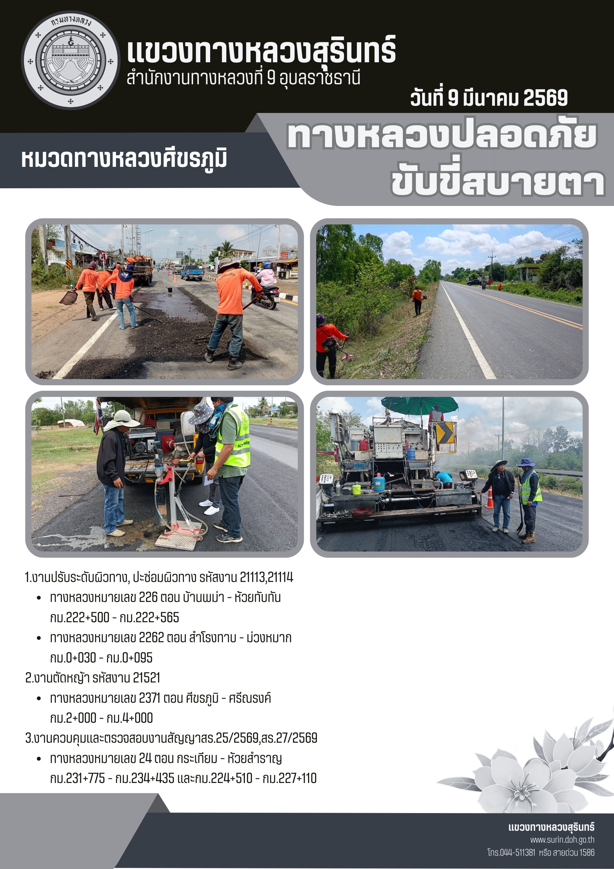 ทางหลวงปลอดภัย ขับขี่สบายตา 9 มีนาคม 2569