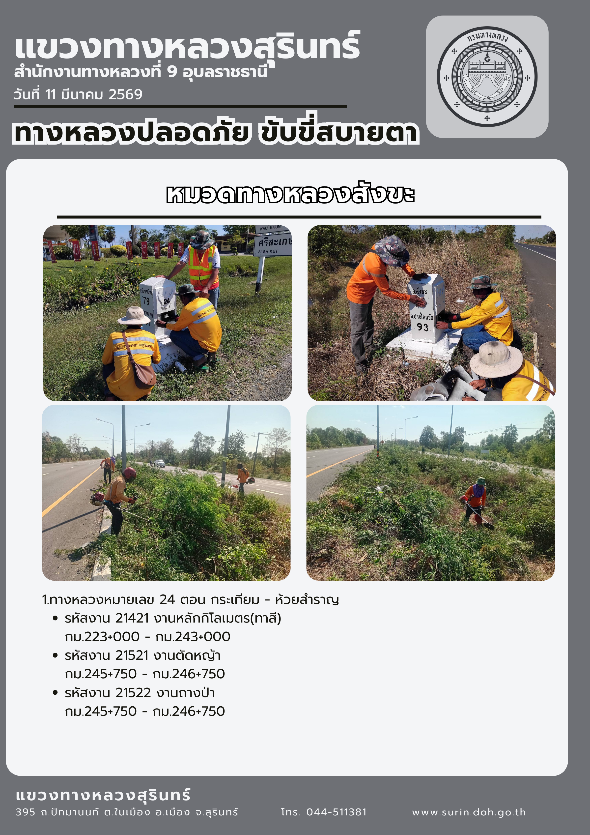 ข้อมูลข่าว : ทางหลวงปลอดภัย ขับขี่สบายตา 11 มีนาคม 2569