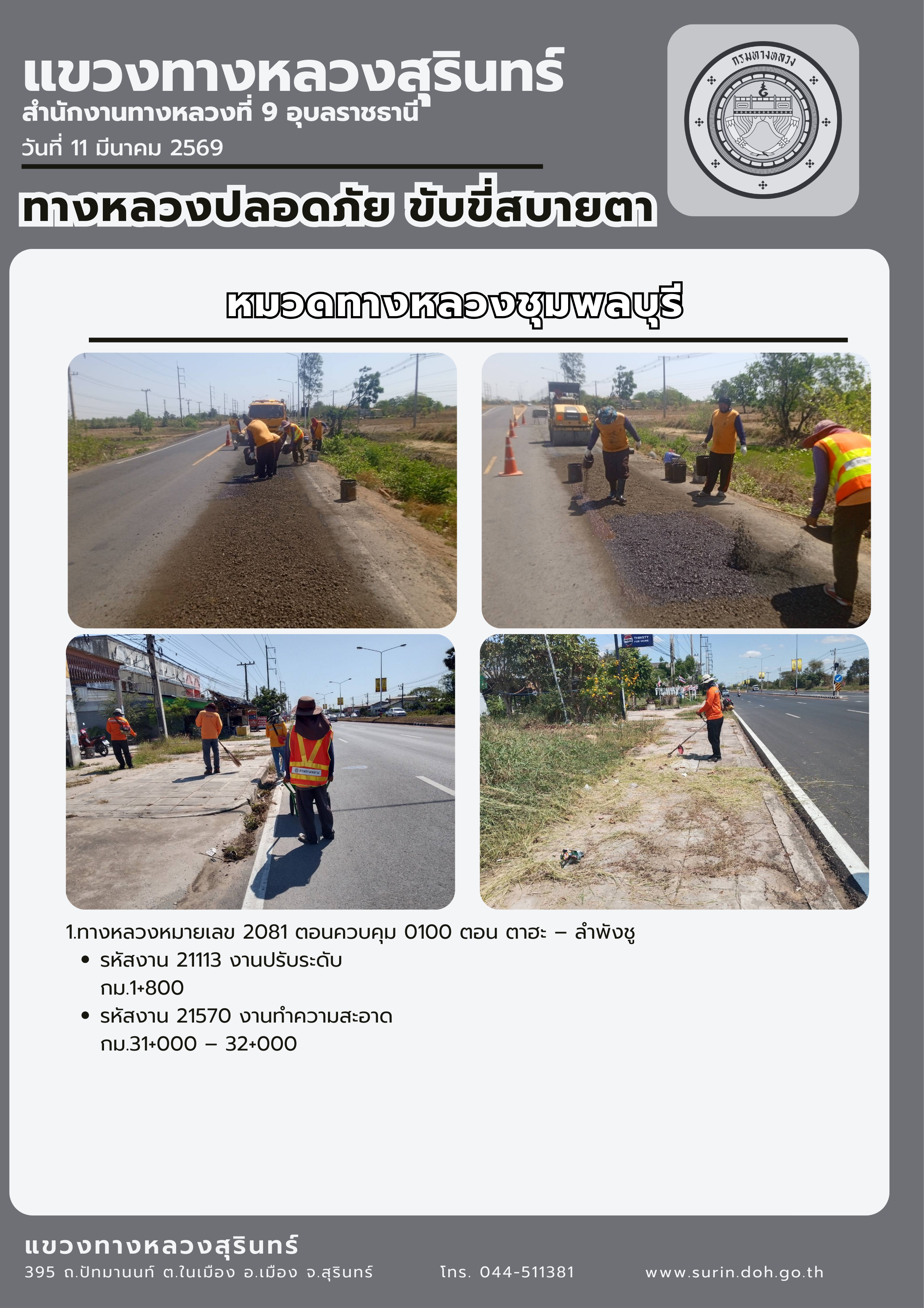 ทางหลวงปลอดภัย ขับขี่สบายตา 11 มีนาคม 2569