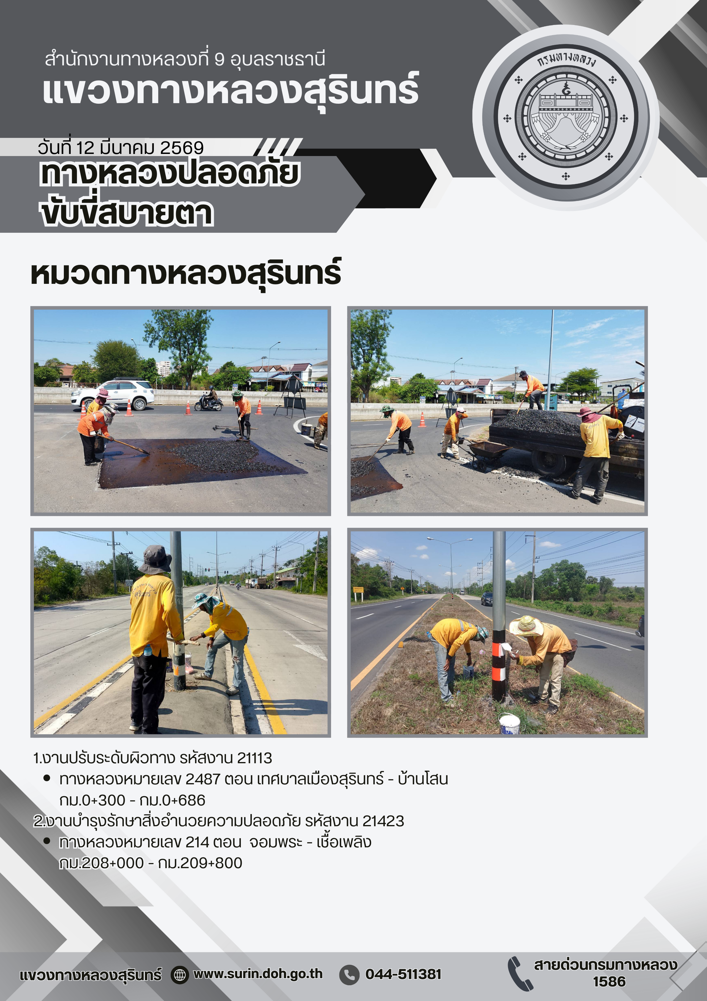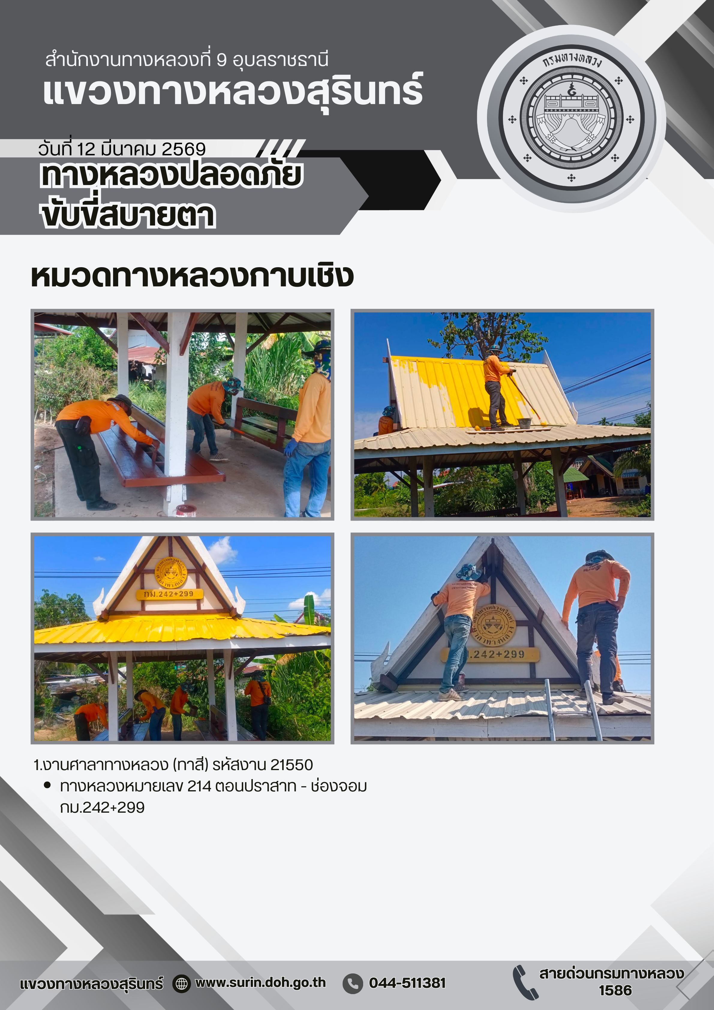 ทางหลวงปลอดภัย ขับขี่สบายตา 12 มีนาคม 2569