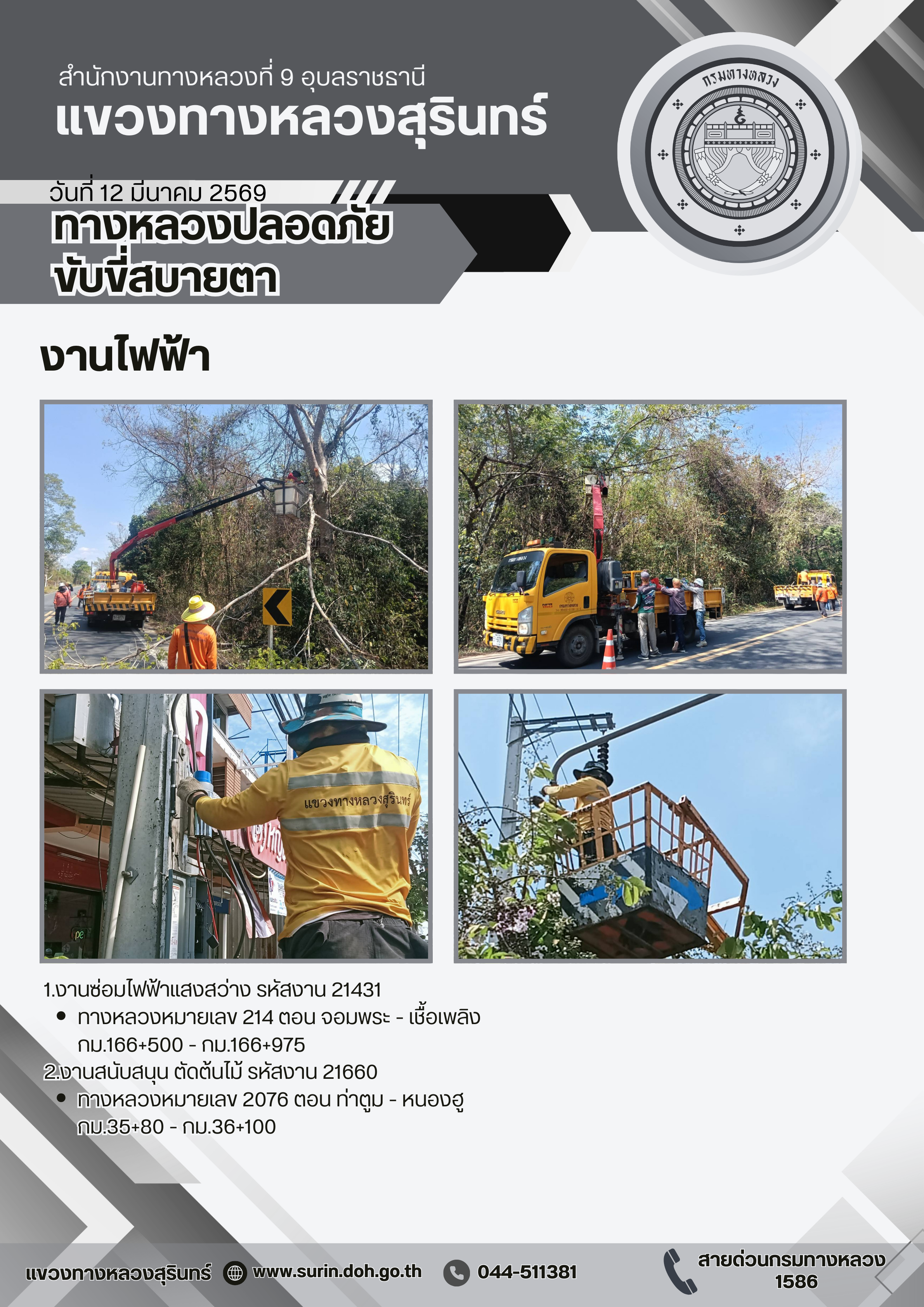 ข้อมูลข่าว : ทางหลวงปลอดภัย ขับขี่สบายตา 12 มีนาคม 2569