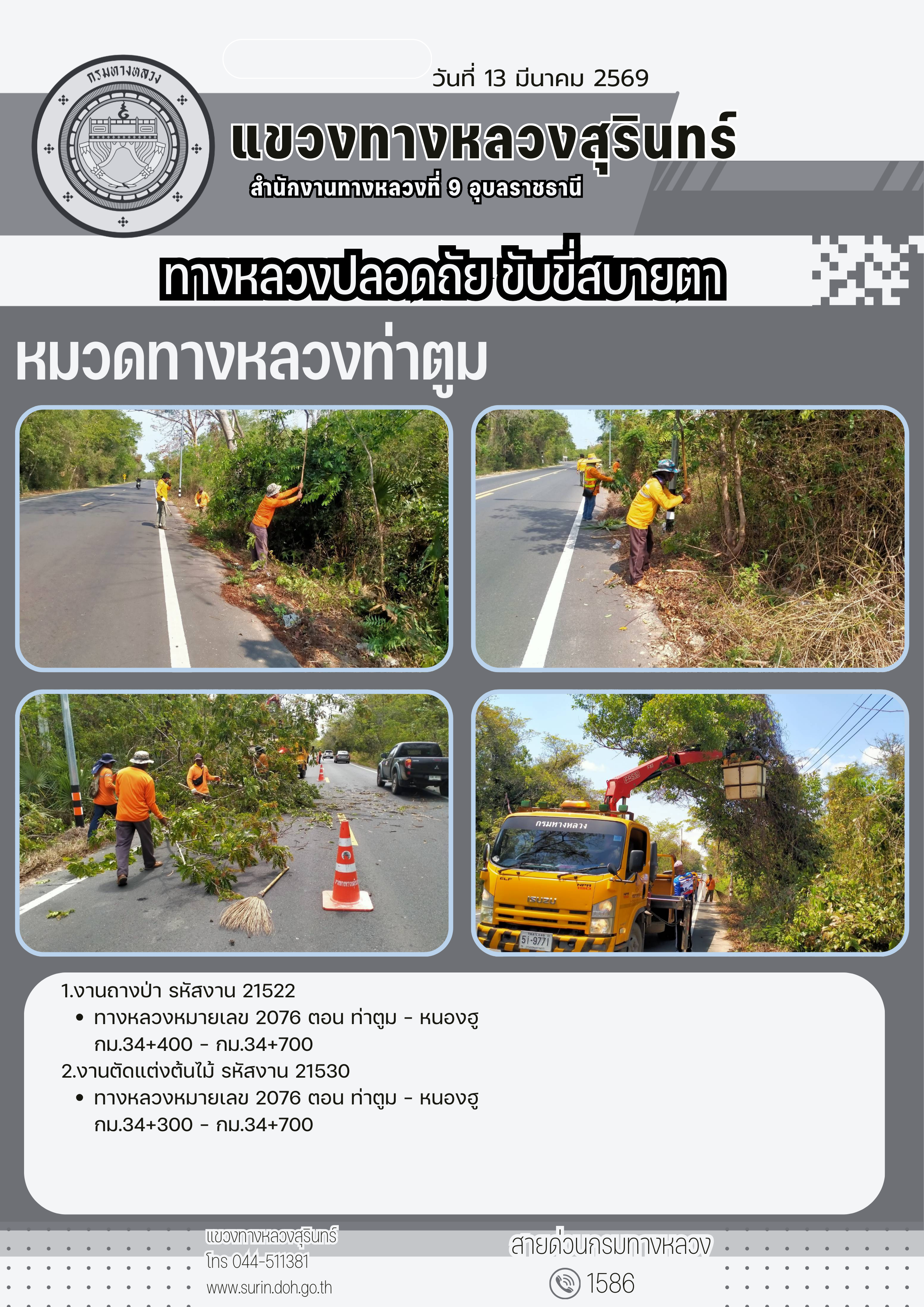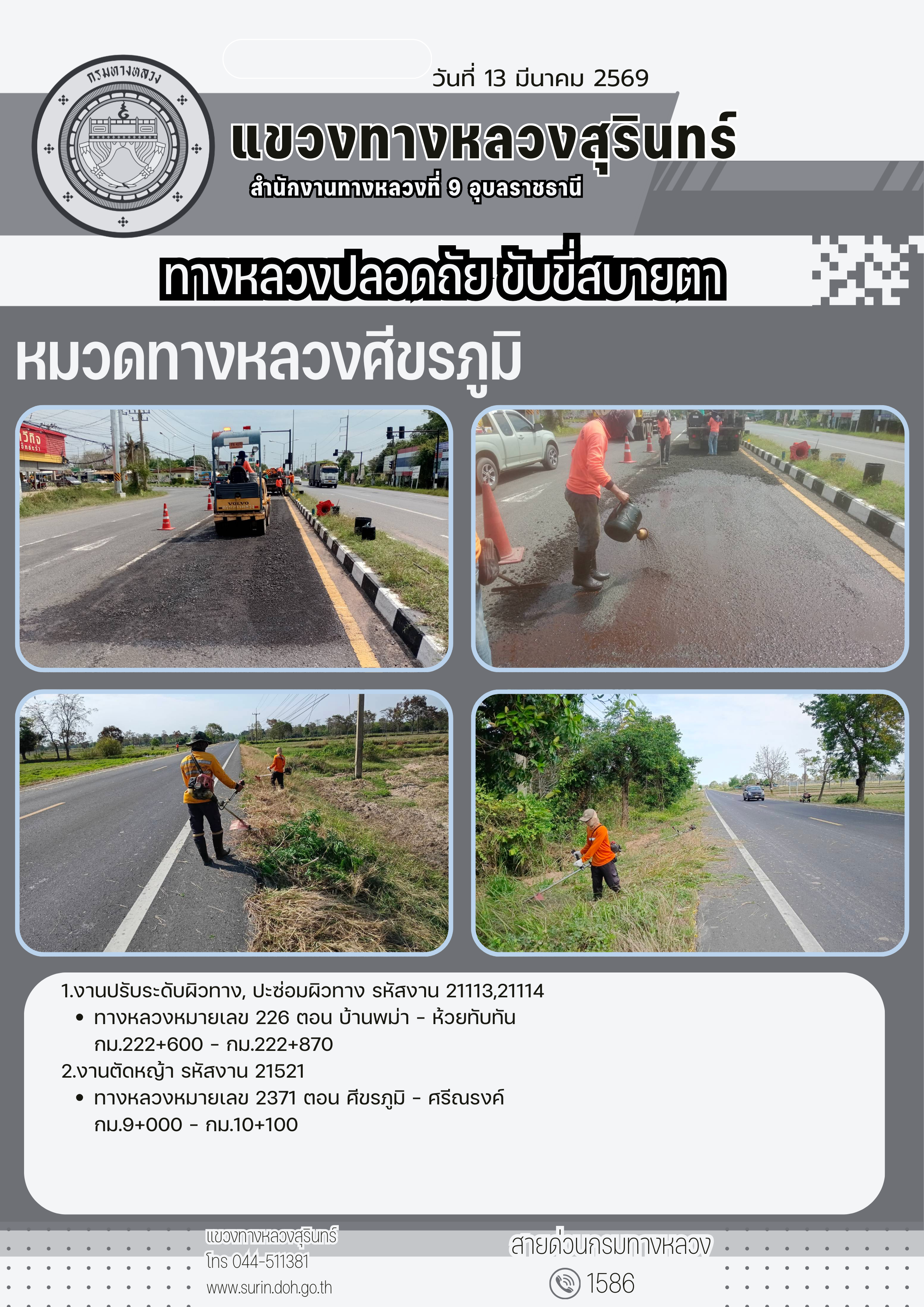 ทางหลวงปลอดภัย ขับขี่สบายตา 13 มีนาคม 2569