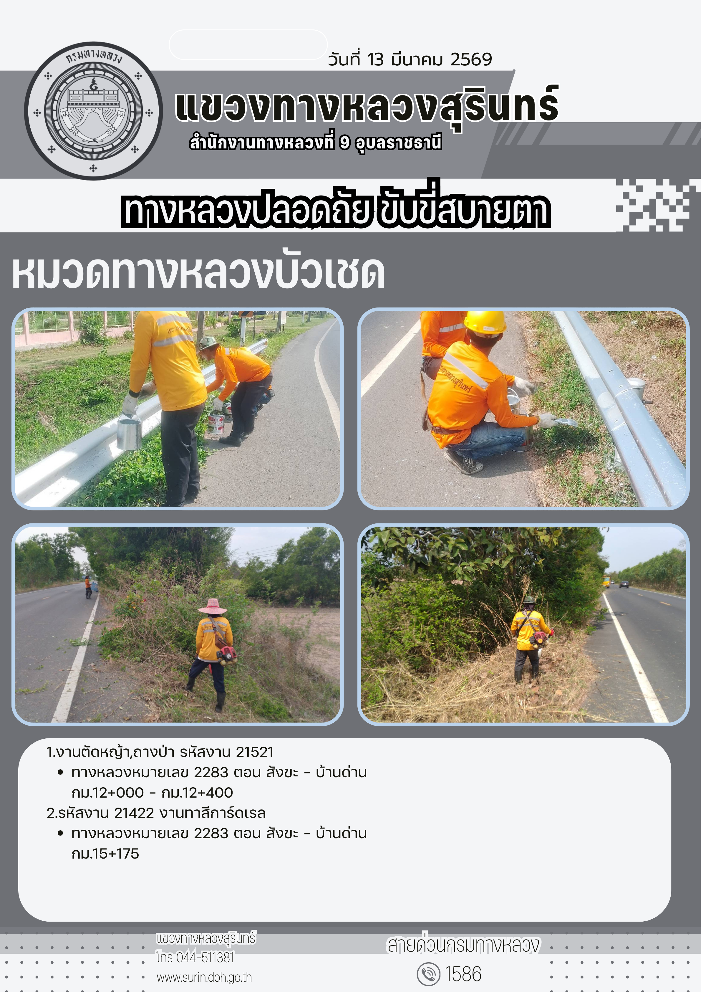 ข้อมูลข่าว : ทางหลวงปลอดภัย ขับขี่สบายตา 13 มีนาคม 2569