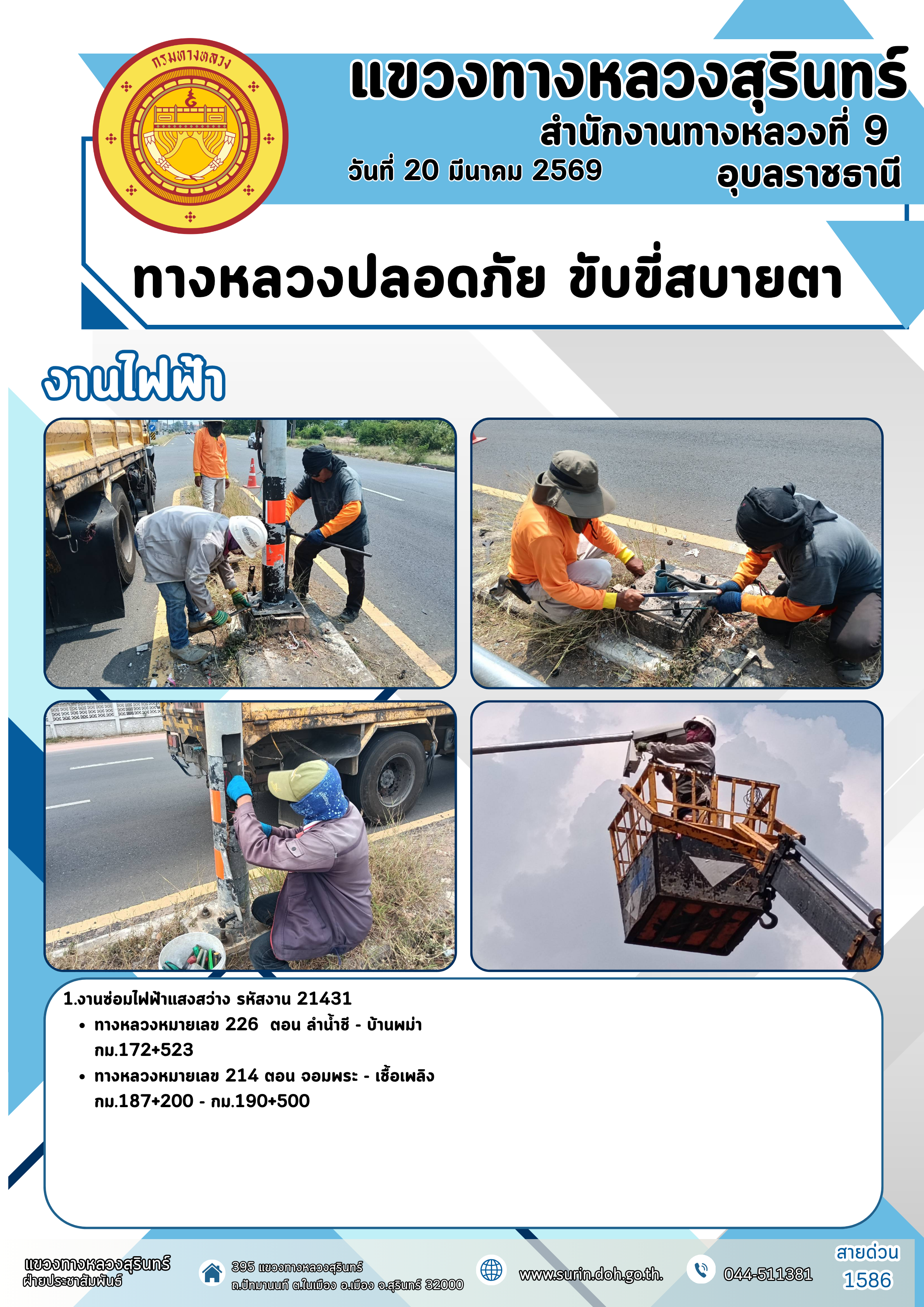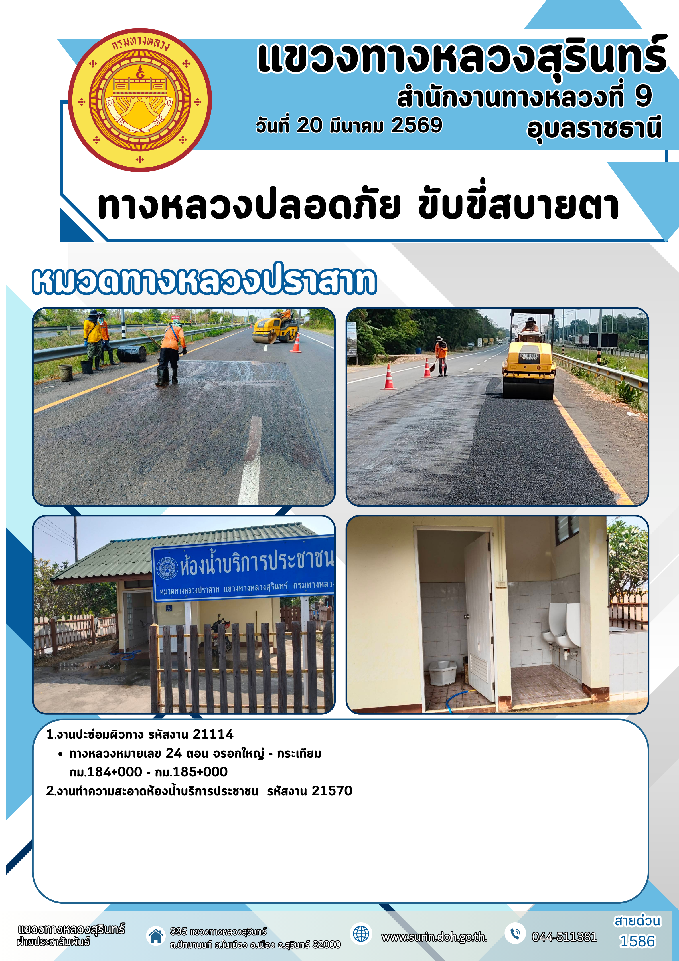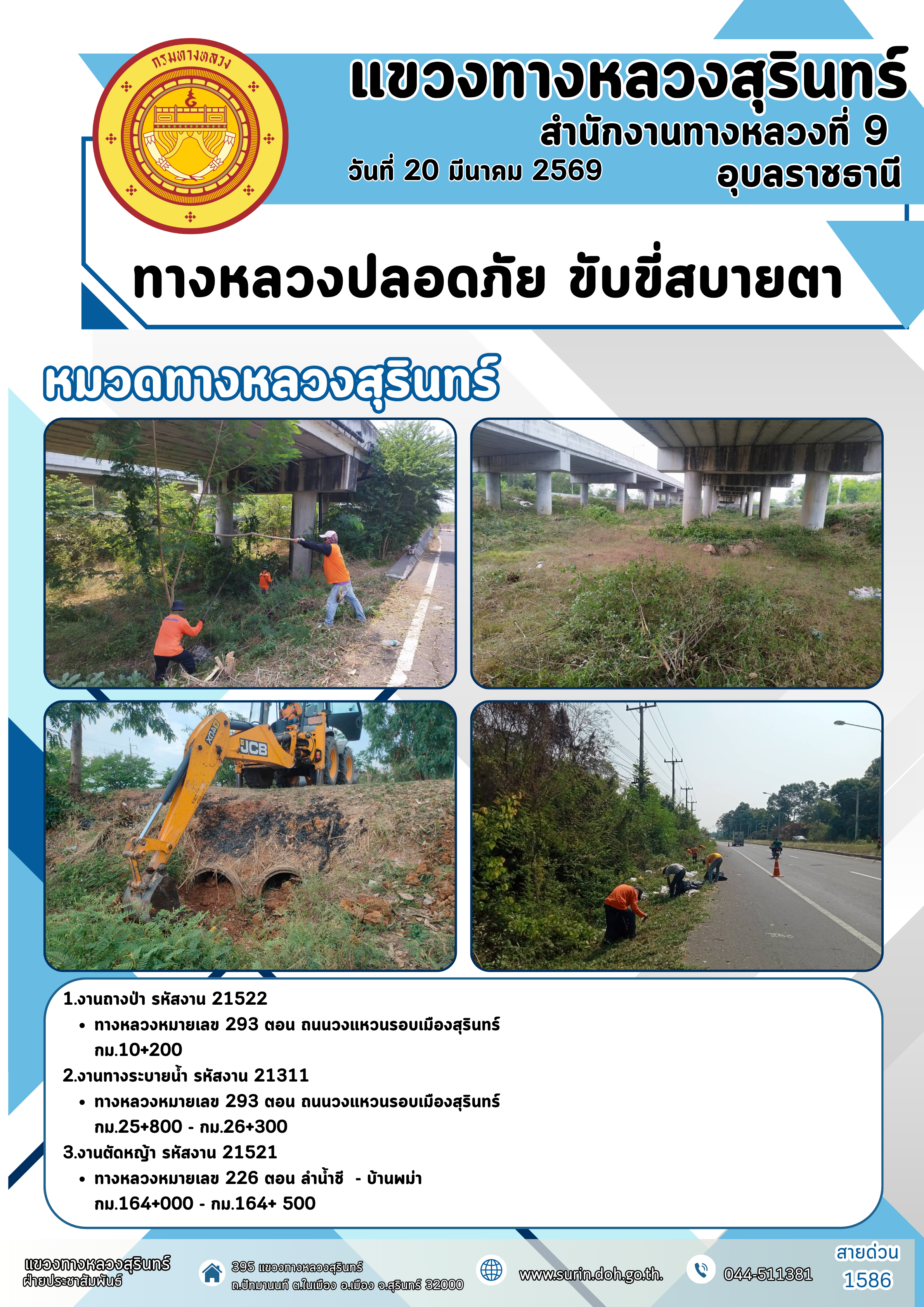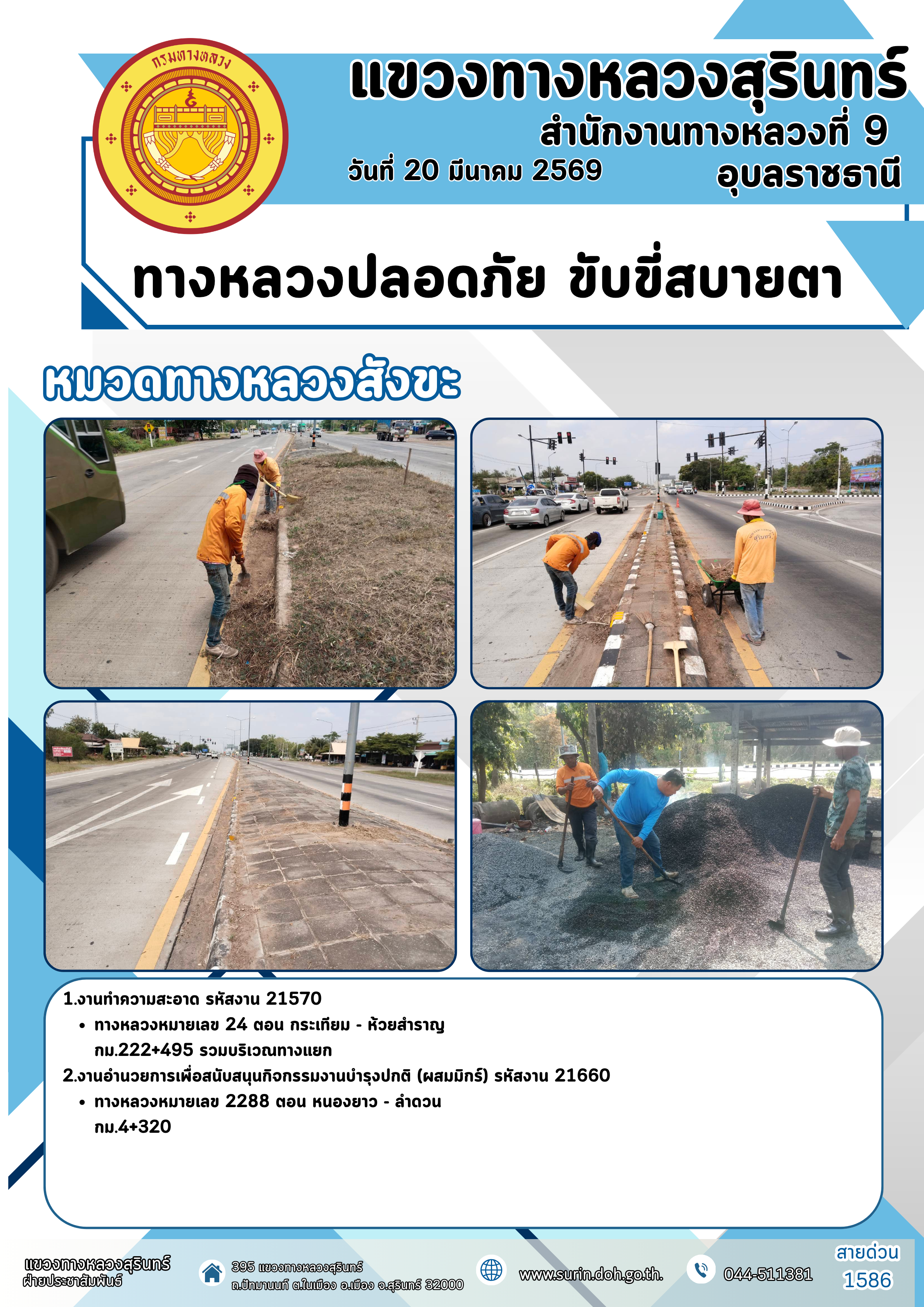 ทางหลวงปลอดภัย ขับขี่สบายตา 20 มีนาคม 2569