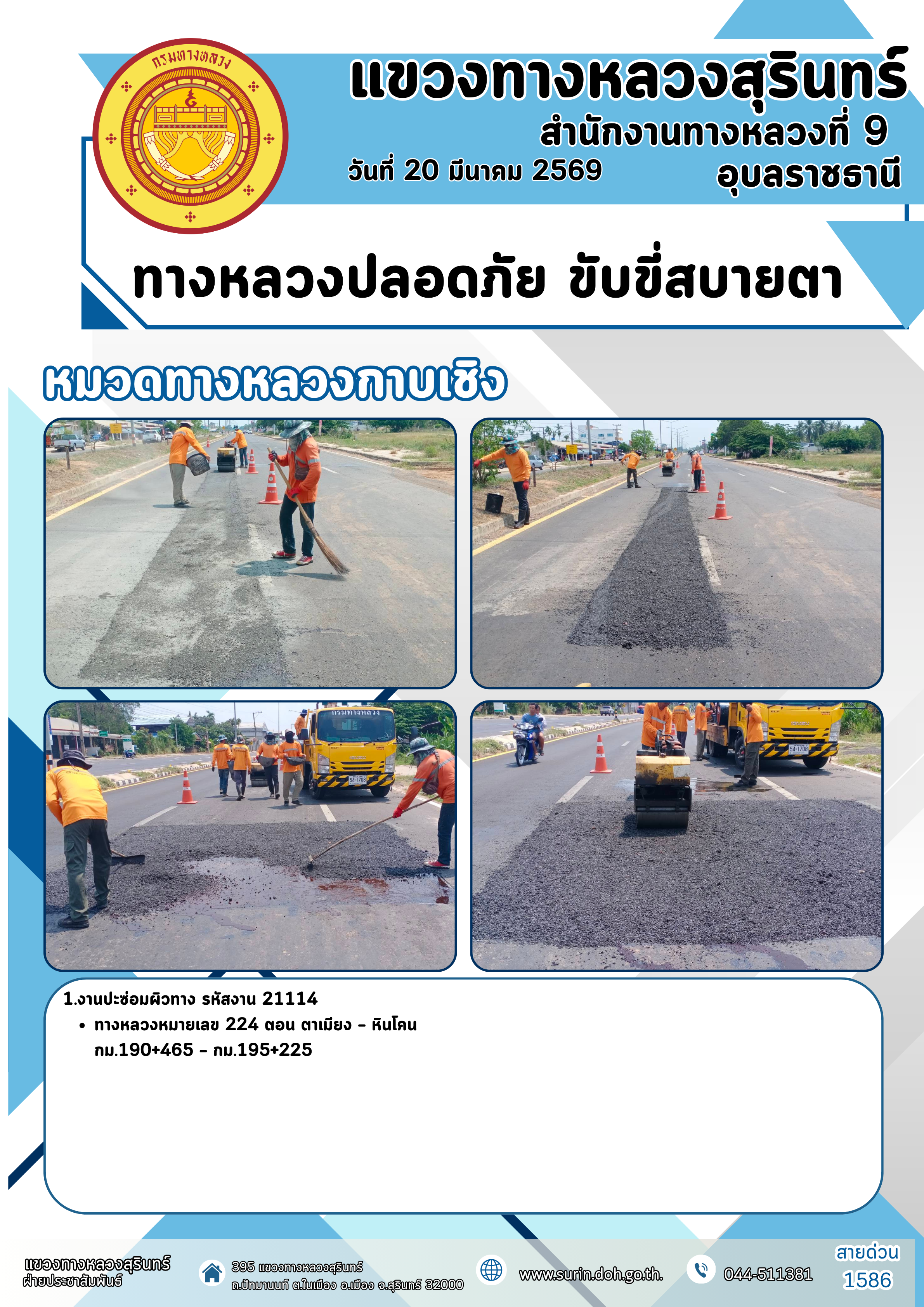 ข้อมูลข่าว : ทางหลวงปลอดภัย ขับขี่สบายตา 20 มีนาคม 2569