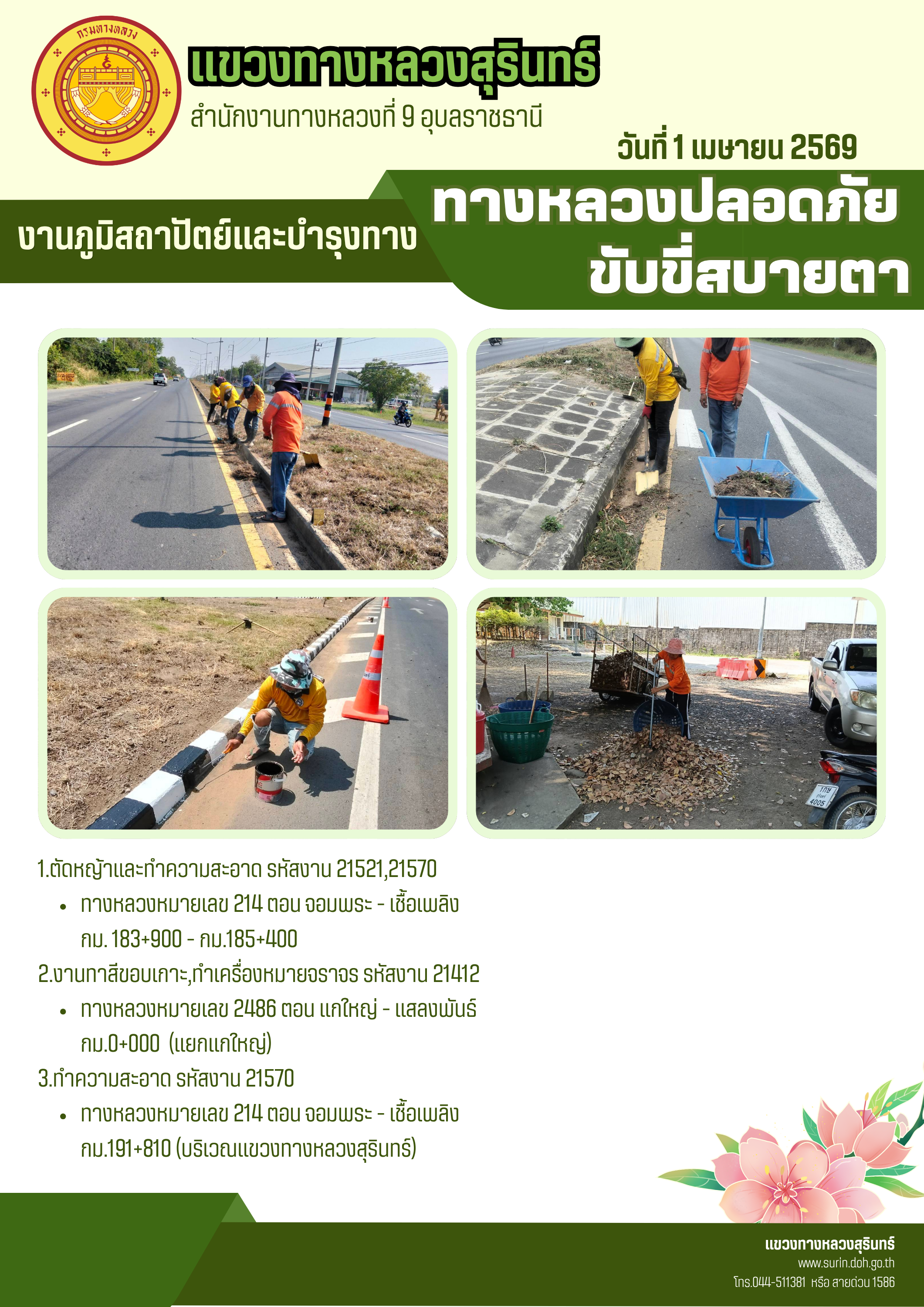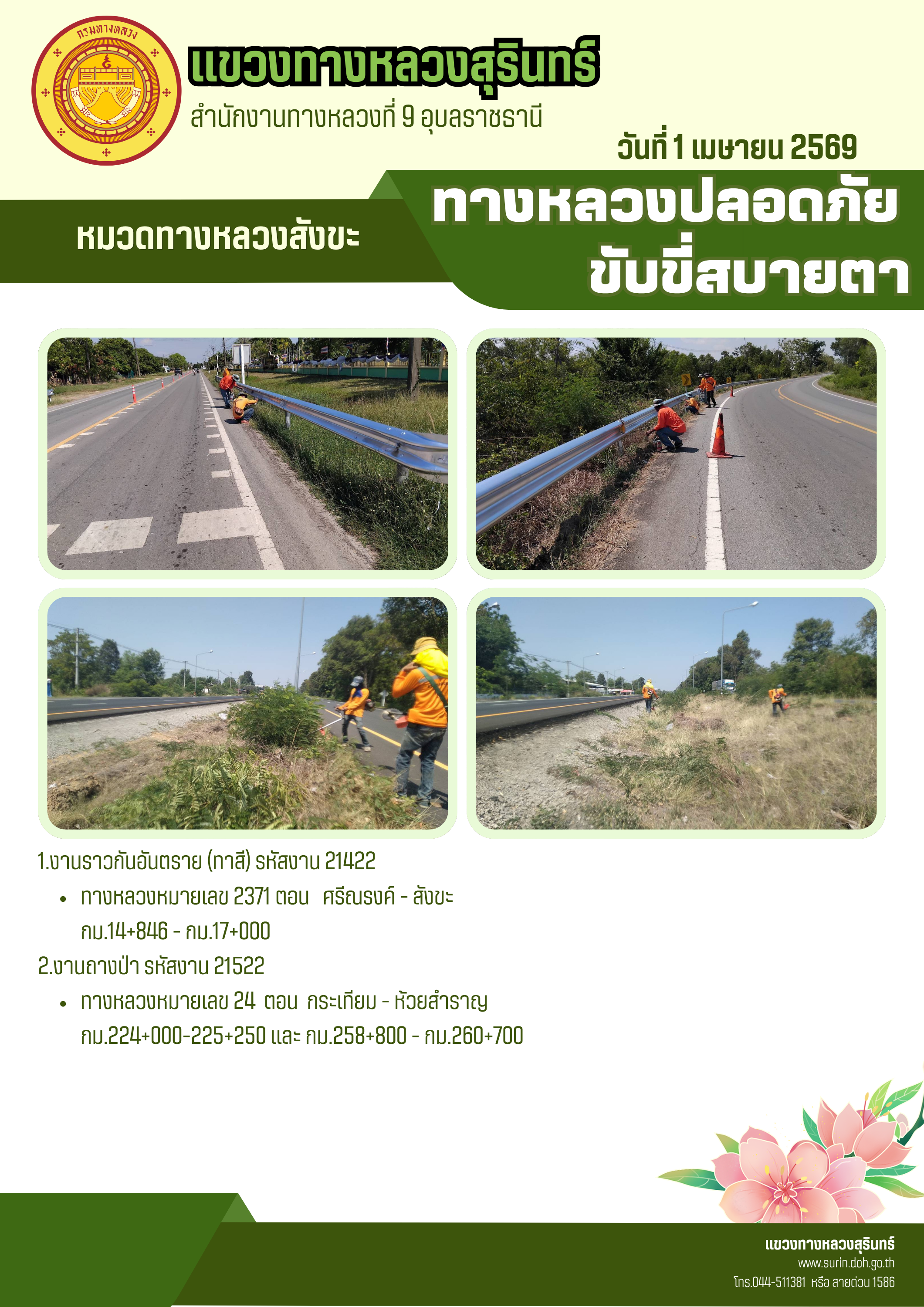 ข้อมูลข่าว : ทางหลวงปลอดภัย ขับขี่สบายตา 1 เมษายน 2569