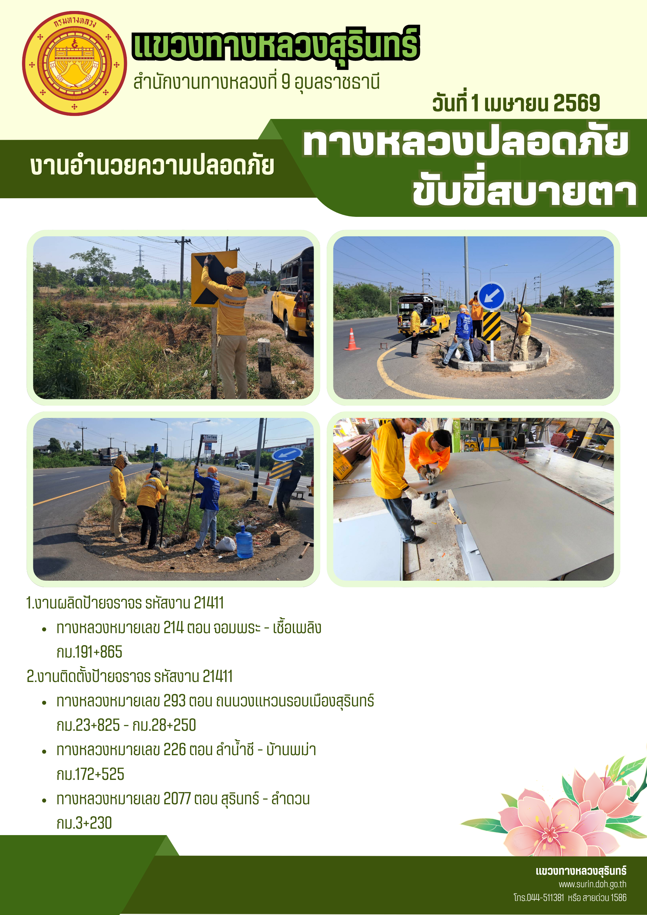 ทางหลวงปลอดภัย ขับขี่สบายตา 1 เมษายน 2569