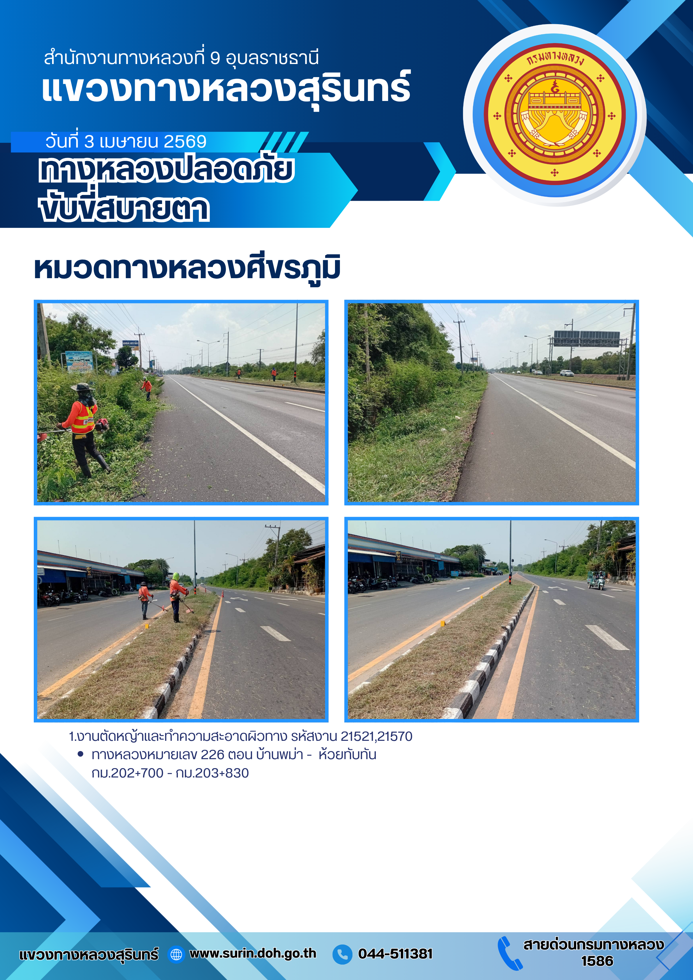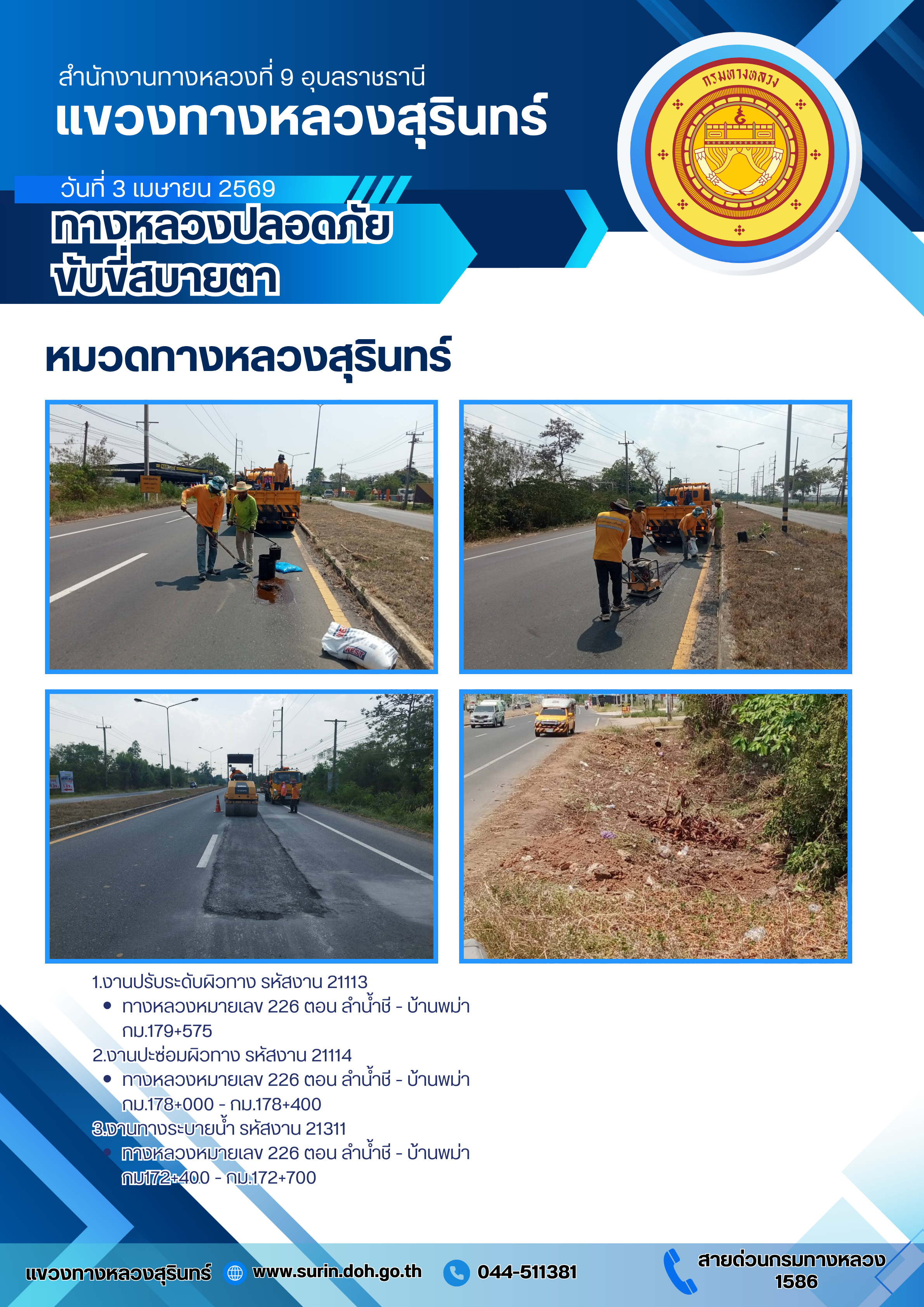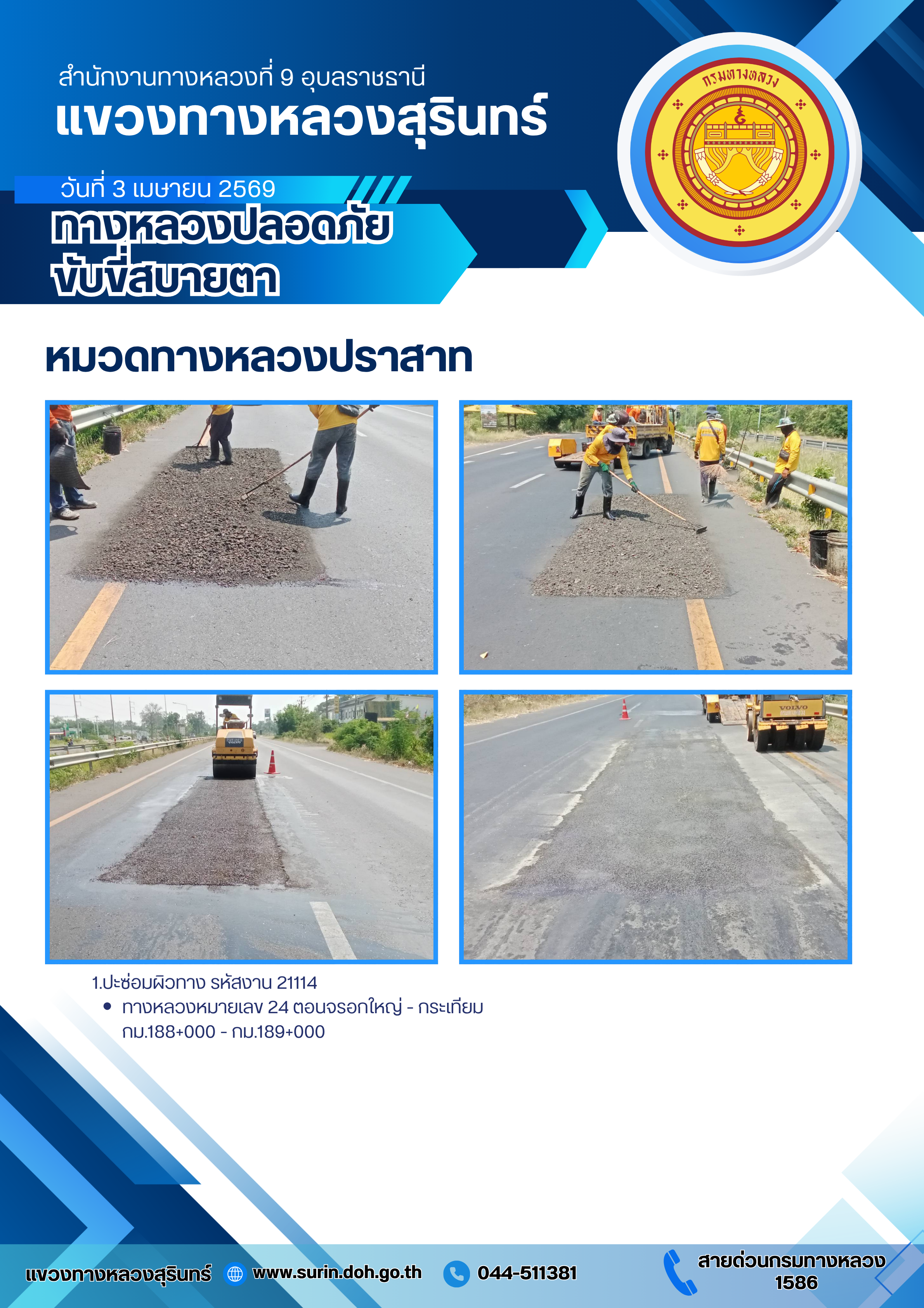 ข้อมูลข่าว : ทางหลวงปลอดภัย ขับขี่สบายตา 3 เมษายน 2569