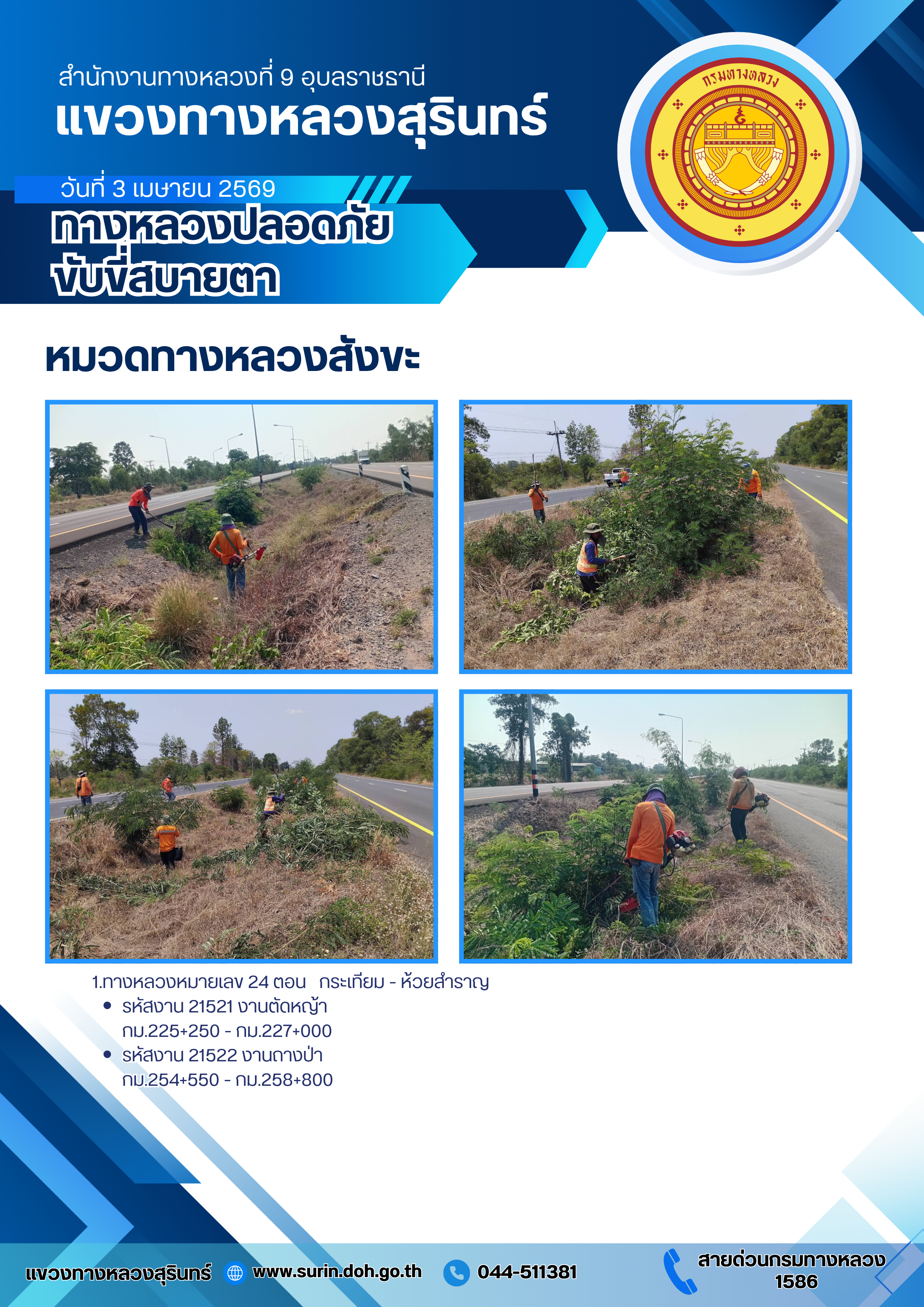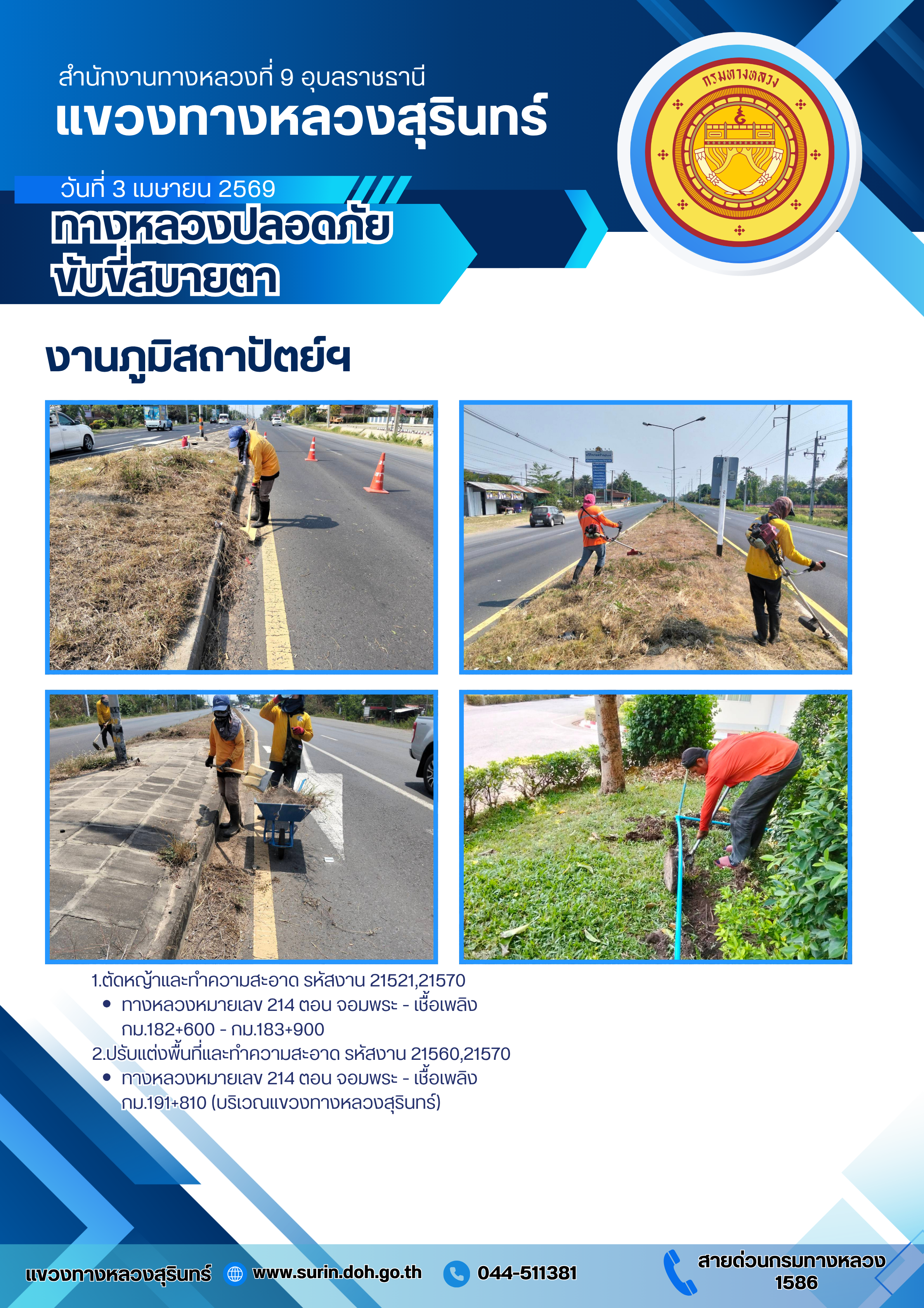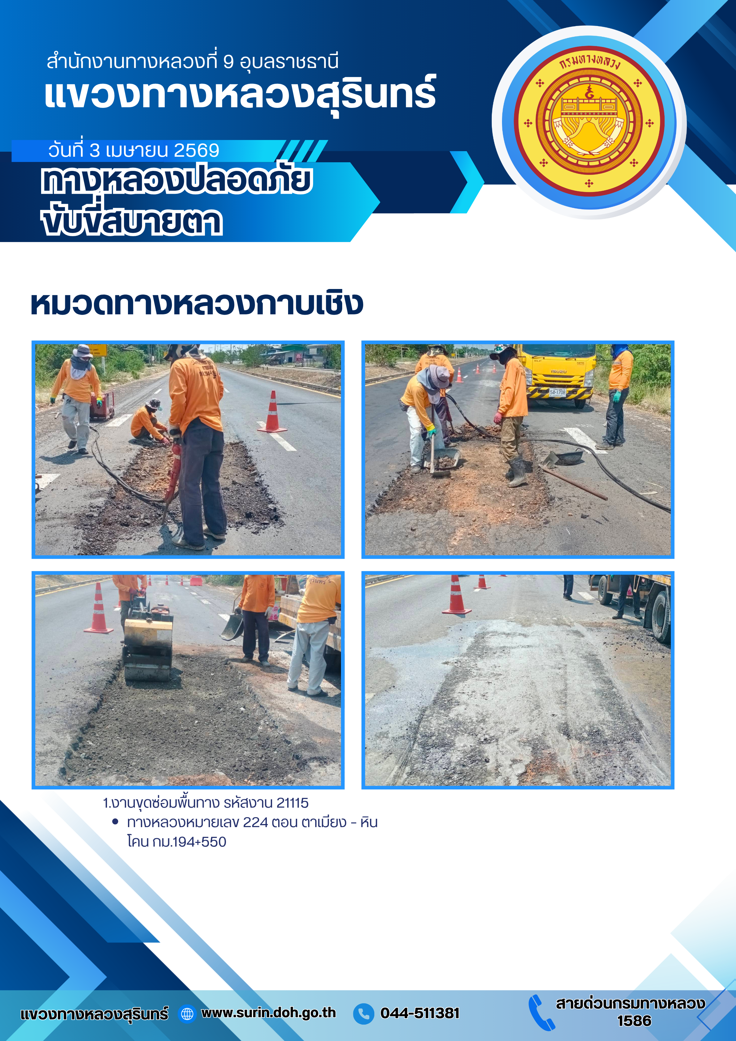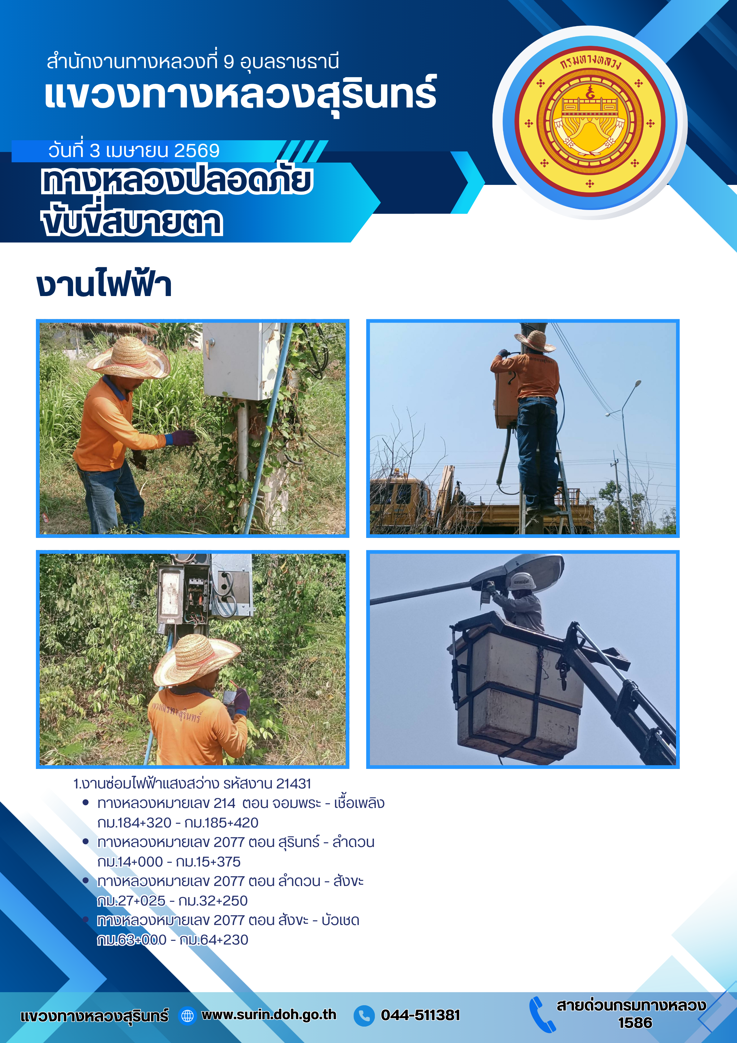 ข้อมูลข่าว : ทางหลวงปลอดภัย ขับขี่สบายตา 3 เมษายน 2569