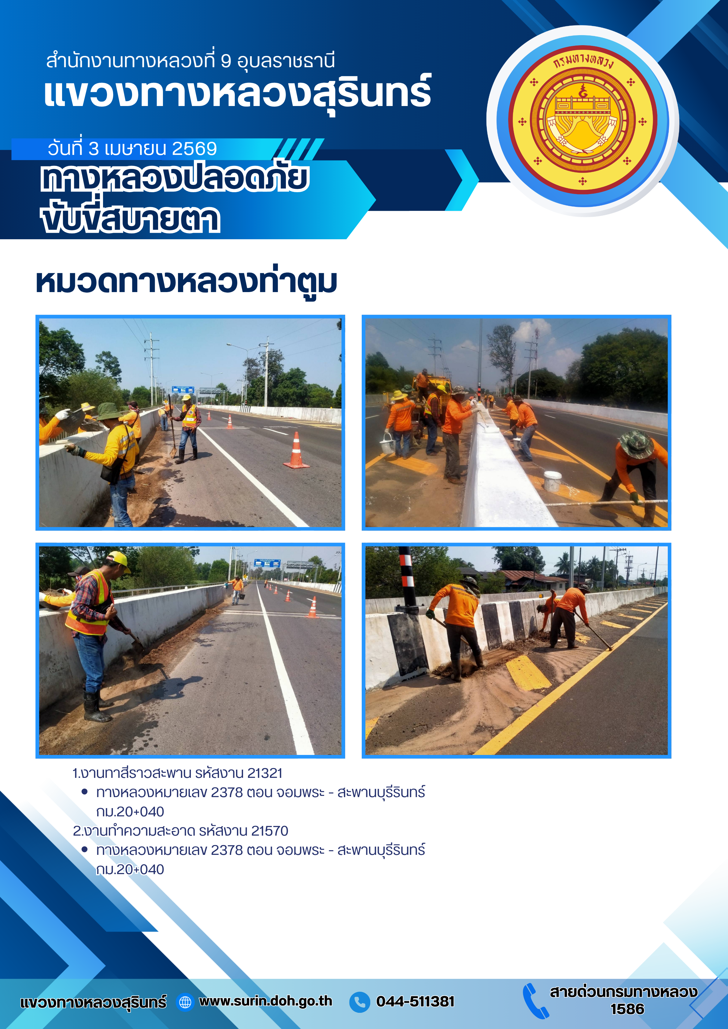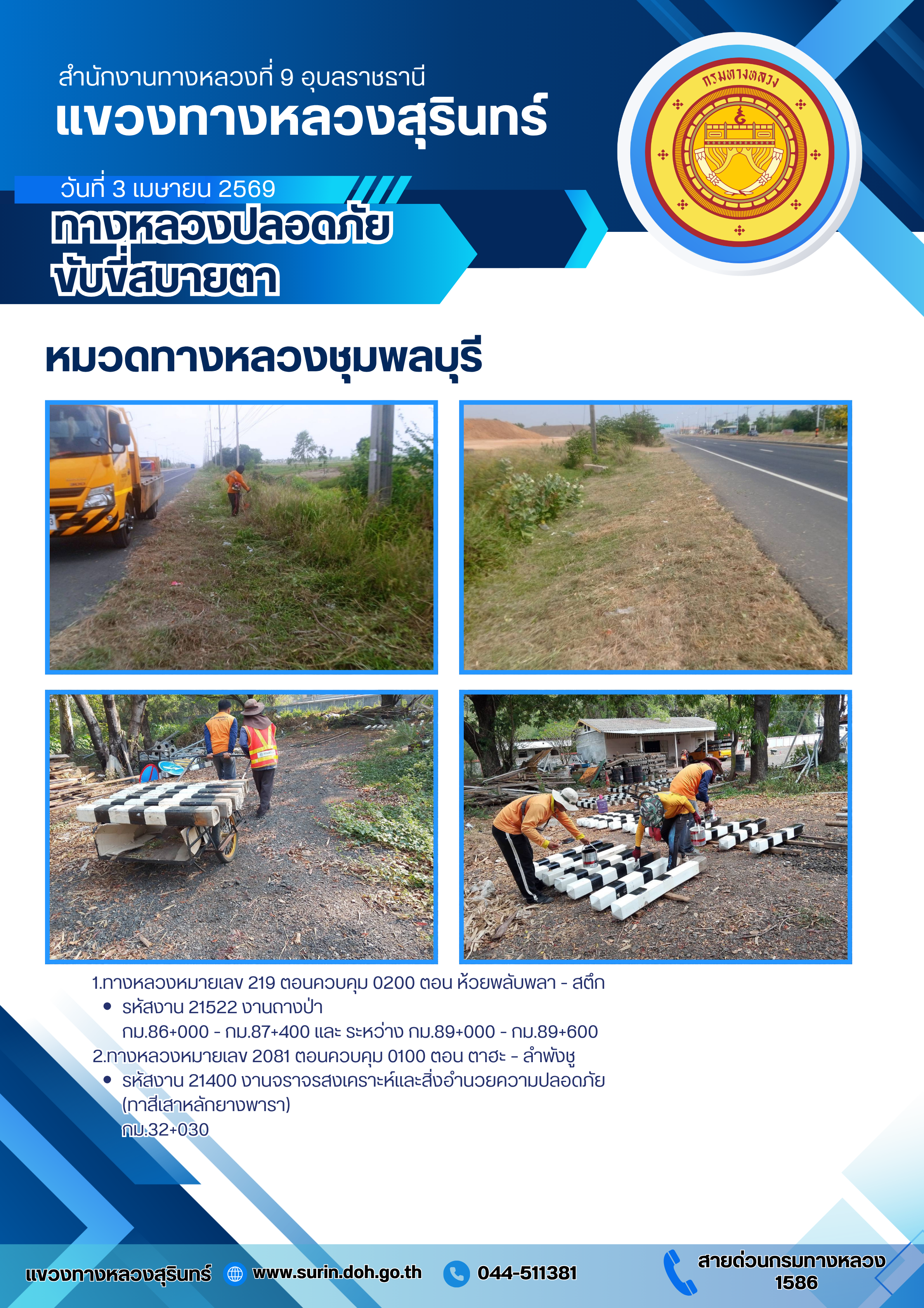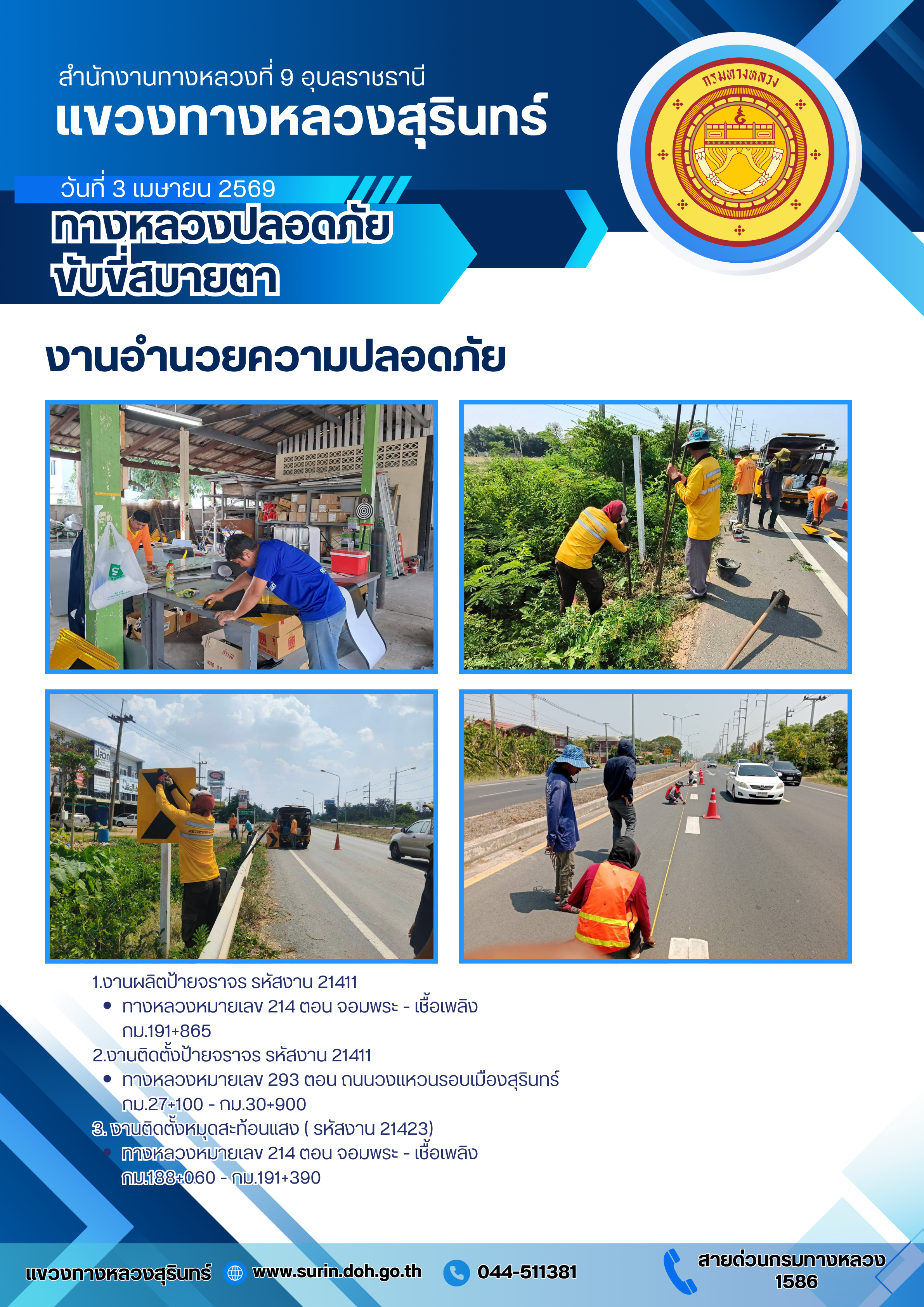ทางหลวงปลอดภัย ขับขี่สบายตา 3 เมษายน 2569