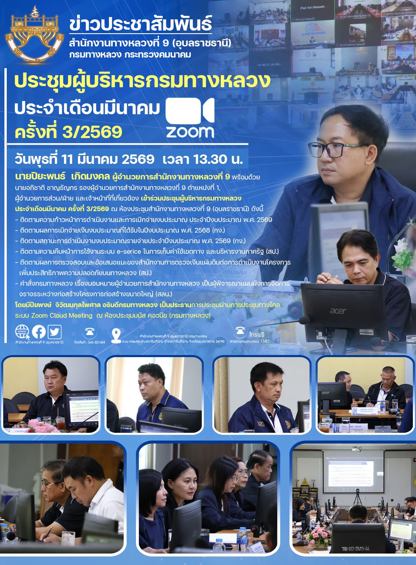 ประชุมผู้บริหารกรมทางหลวงประจำเดือนมีนาคม ครั้งที่ 3/2569