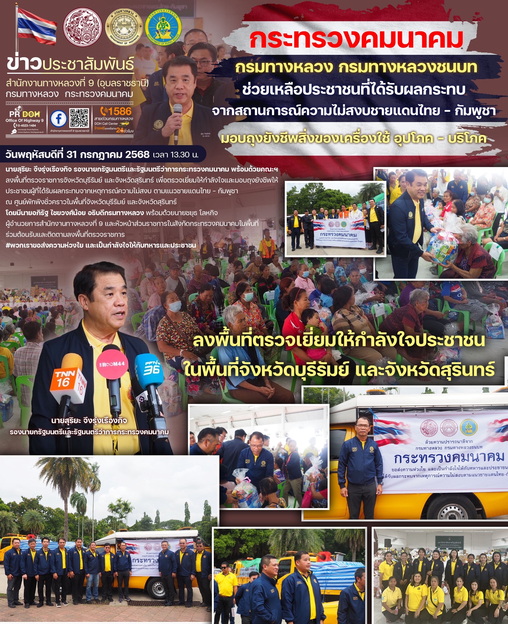 ผู้ตรวจราชการกระทรวงคมนาคม พร้อมด้วยคณะฯ ลงพื้นที่ตรวจราชการเขตตรวจราชการที่ 14 จังหวัดอุบลราชธานี ศรีสะเกษ ยโสธร อำนาจเจริญ