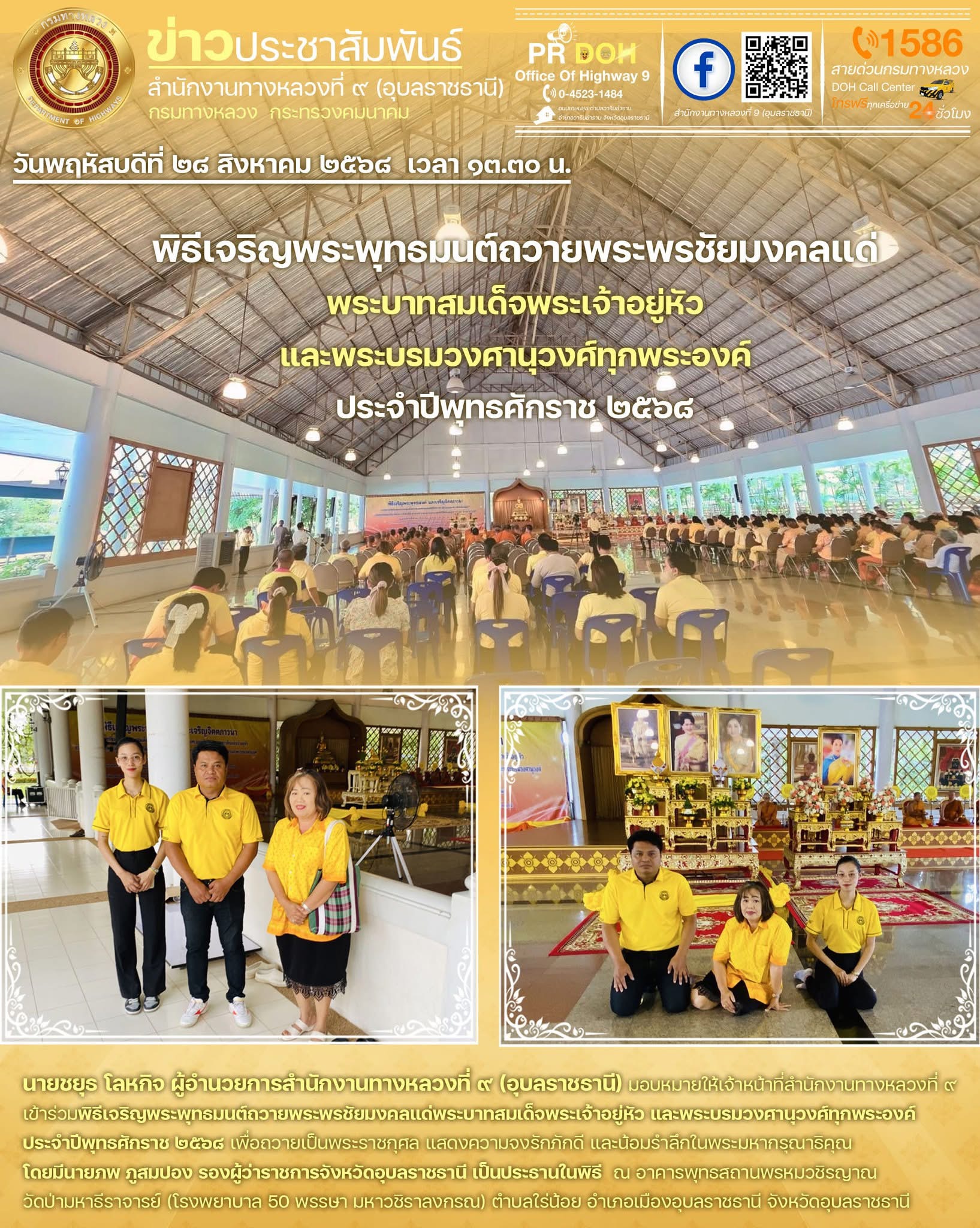 พิธีเจริญพระพุทธมนต์ถวายพระพรชัยมงคลแด่พระบาทสมเด็จพระเจ้าอยู่หัว และพระบรมวงศานุวงศ์ทุกพระองค์