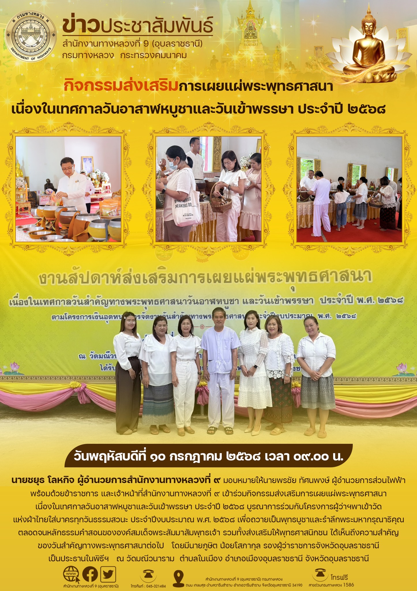 กิจกรรมส่งเสริมการเผยแผ่พระพุทธศาสนาเนื่องในเทศกาลวันอาสาฬหบูชาและวันเข้าพรรษา ประจำปี ๒๕๖๘