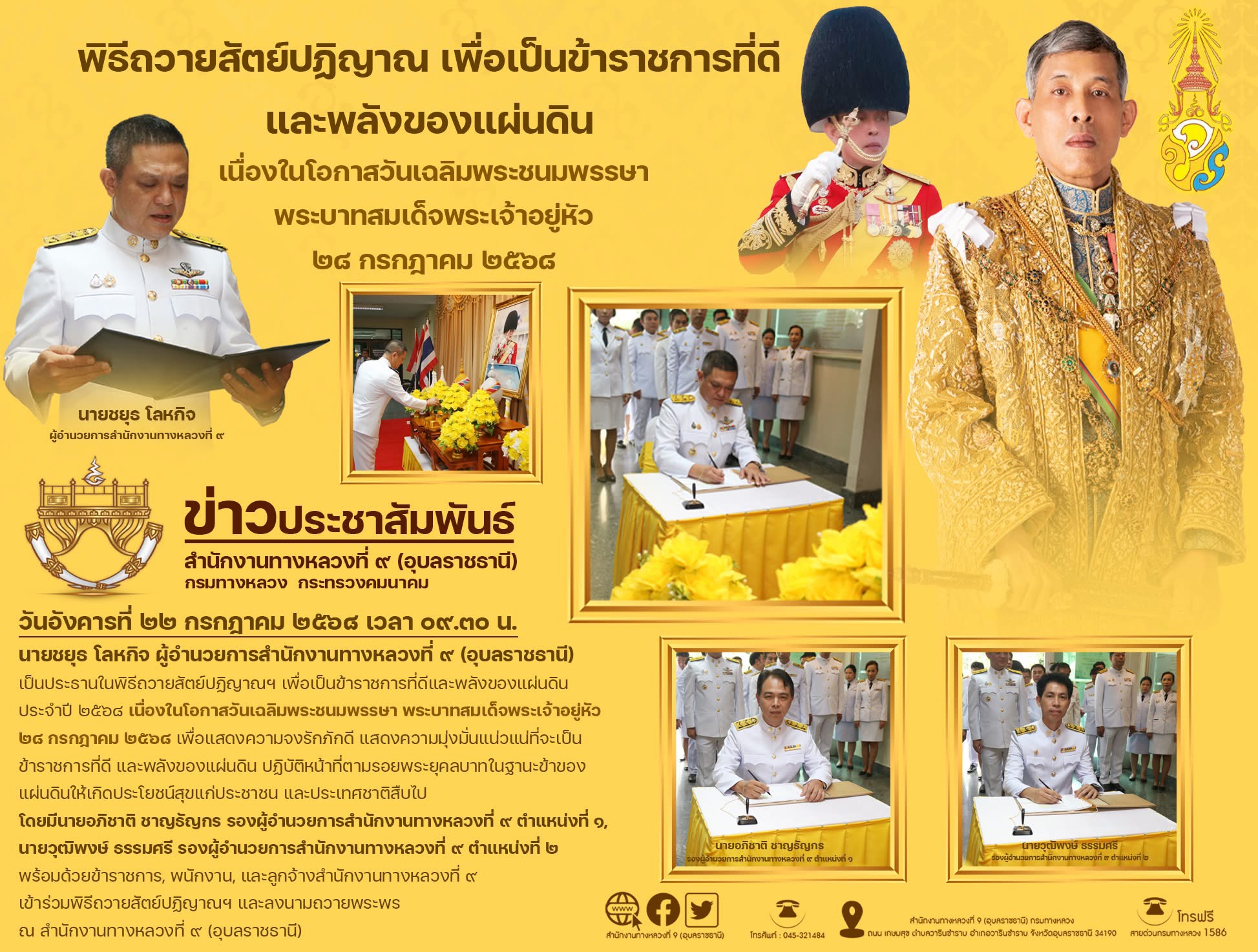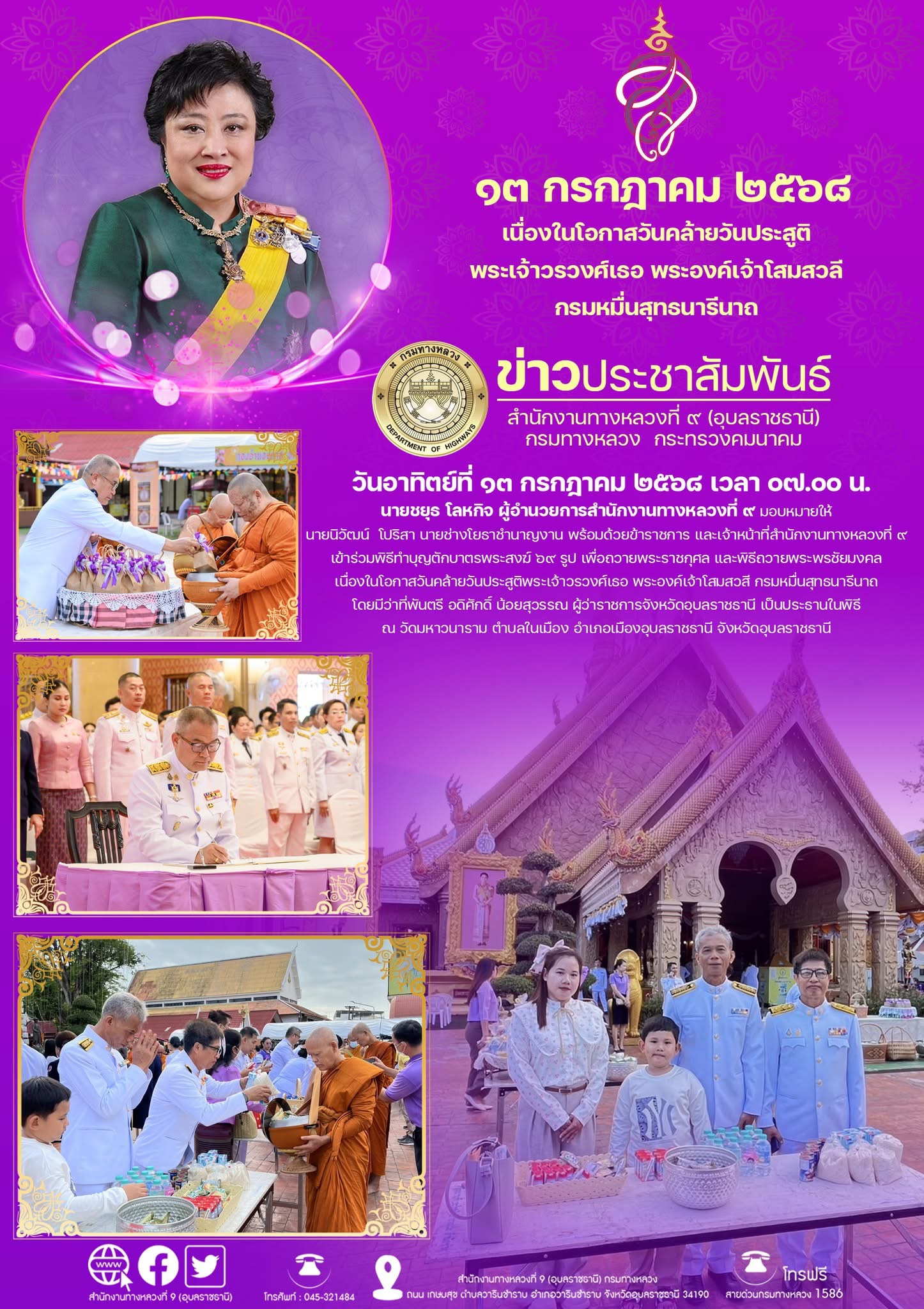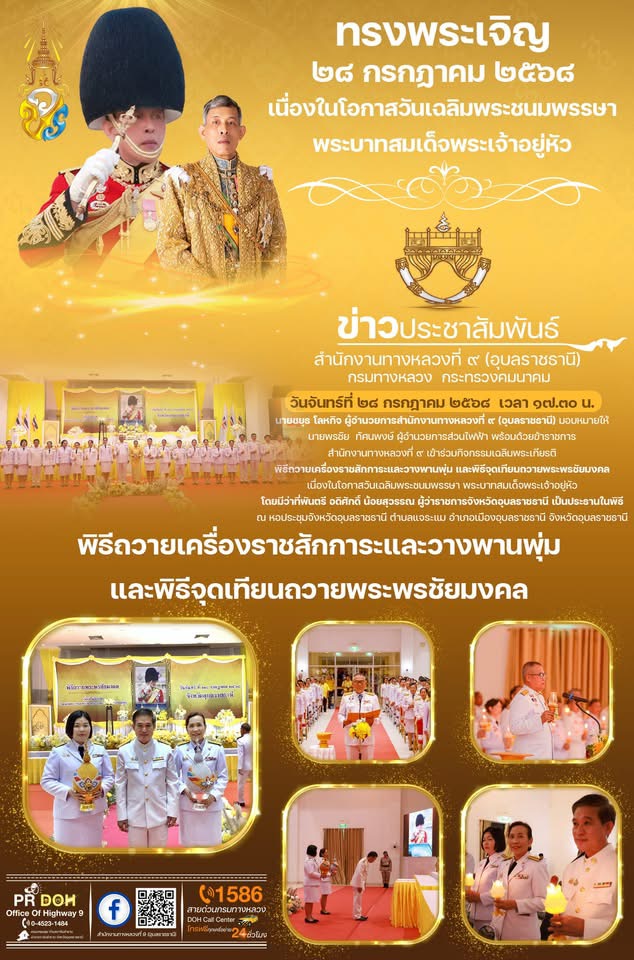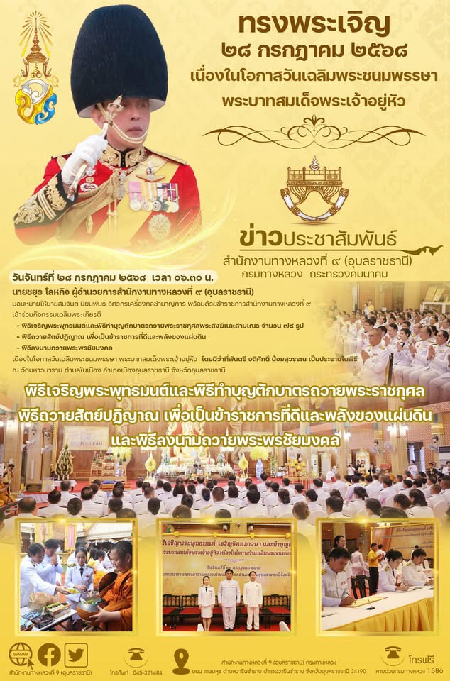 ร่วมพิธีถวายพระพรชัยมงคล เนื่องในโอกาสวันคล้ายวันประสูติสมเด็จพระเจ้าน้องนางเธอ เจ้าฟ้าจุฬาภรณวลัยลักษณ์ อัครราชกุมารี กรมพระศรีสวางควัฒน วรขัตติยราชนารี