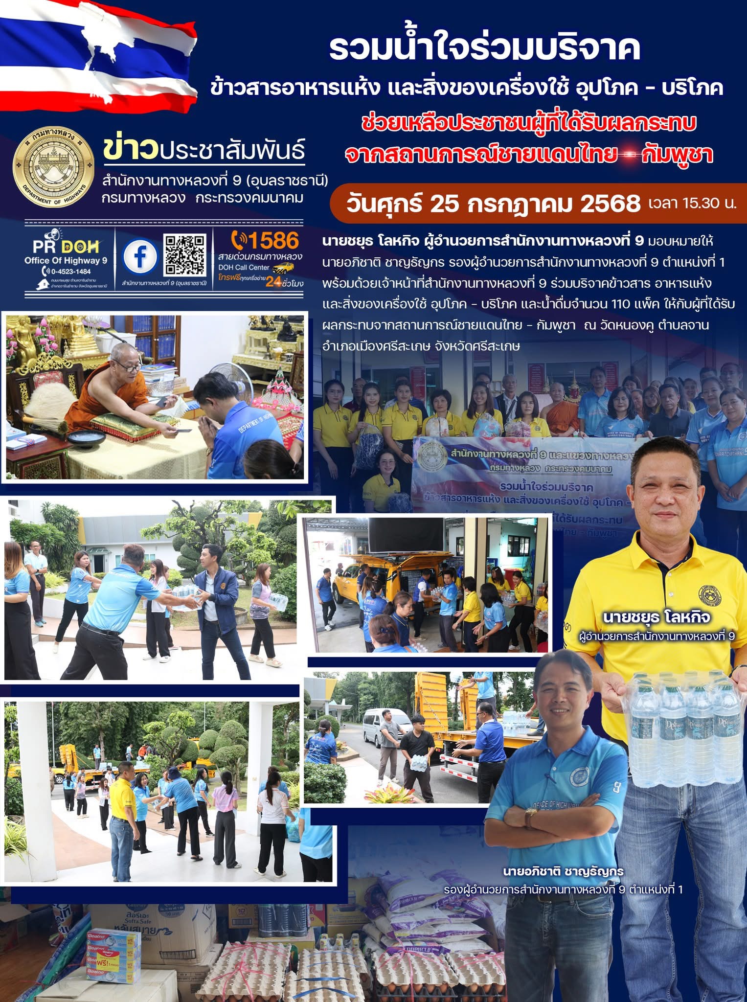 ร่วมบริจาคสิ่งของเครื่องใช้ อุปโภค - บริโภค ที่ได้รับผลกระทบจากสถานการณ์ชายแดนไทย - กัมพูชา ณ วัดหนองคู