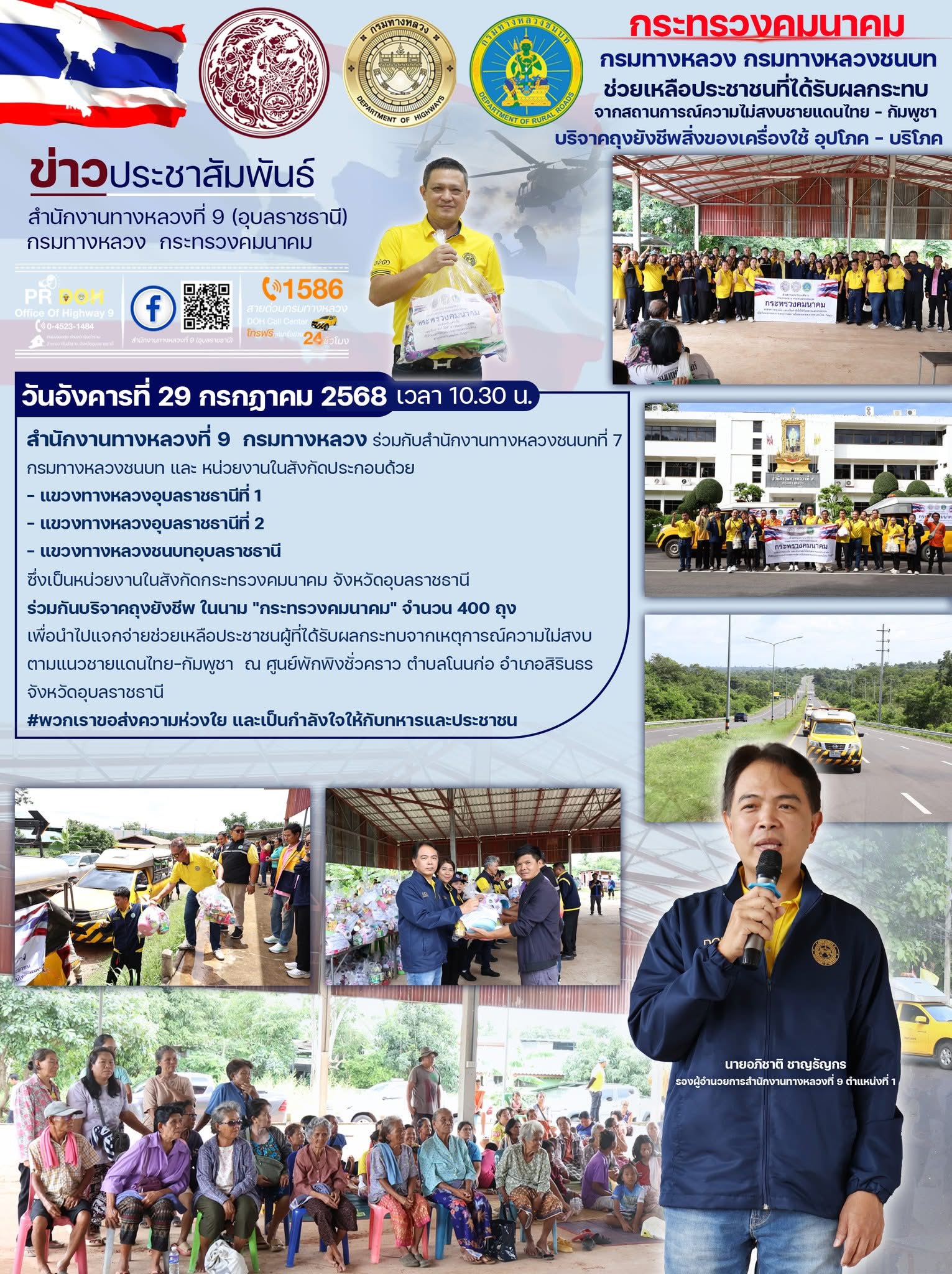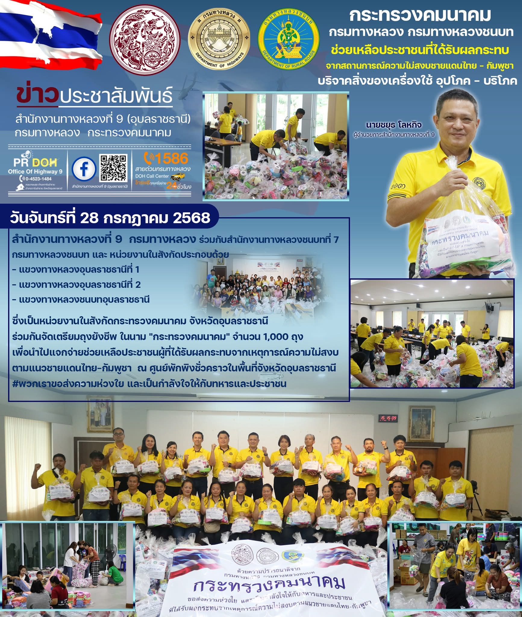 กระทรวงคมนาคมแจกจ่ายถุงยังชีพ