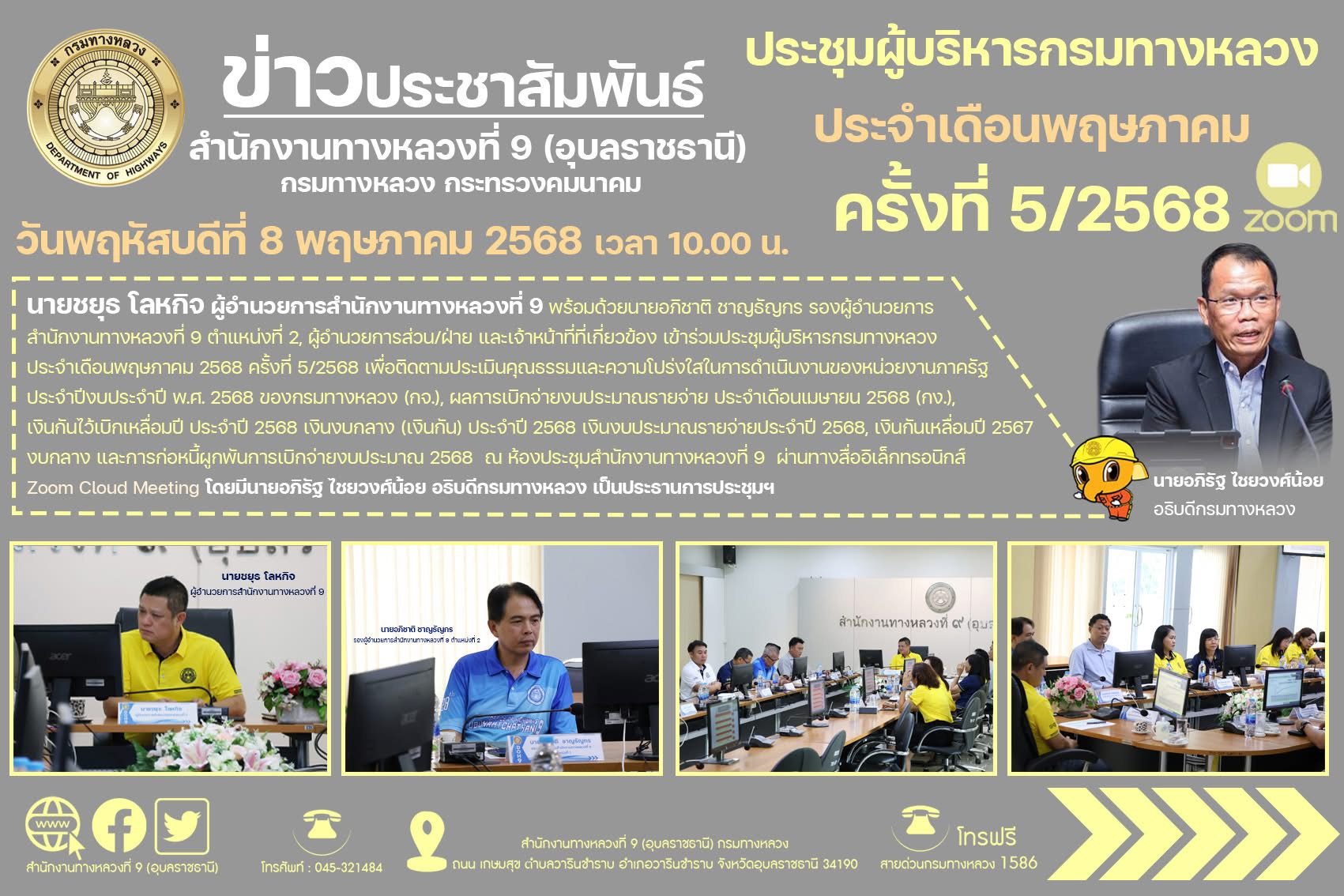 ประชุมผู้บริหารกรมทางหลวง ประจำเดือนพฤษภาคม 2568 ครั้งที่ 5/2568
