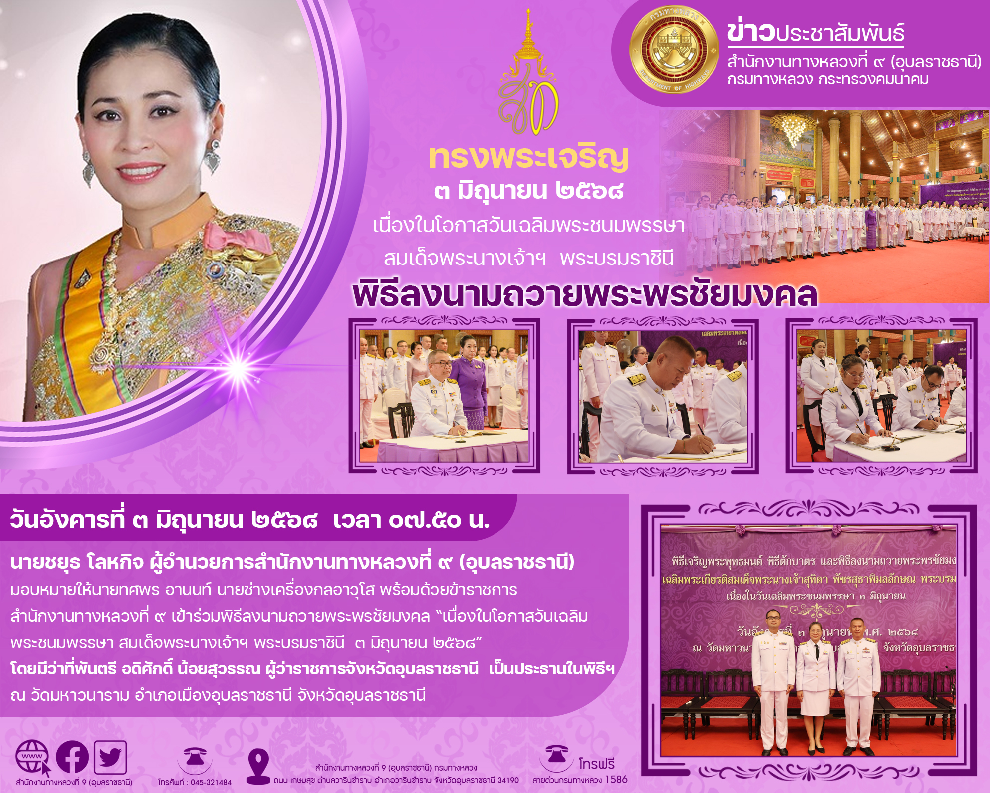 วันเฉลิมพระชนมพรรษา สมเด็จพระนางเจ้าฯ พระบรมราชินี ๓ มิถุนายน ๒๕๖๘