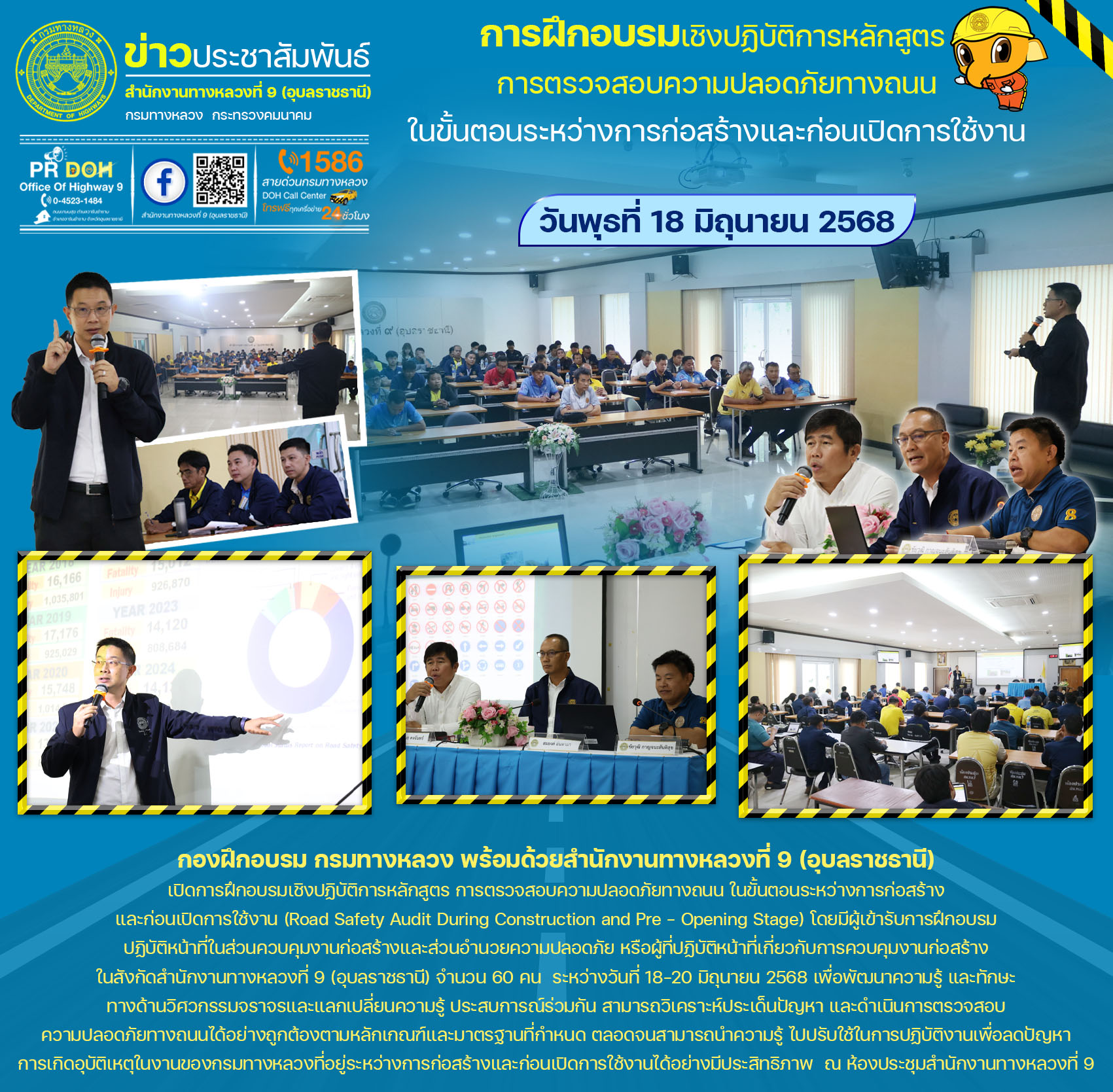 อบรมเชิงปฏิบัติการหลักสูตร การตรวจสอบความปลอดภัยทางถนน ในขั้นตอนระหว่างการก่อสร้าง และก่อนเปิดการใช้งาน (Road Safety Audit During Construction and Pre - Opening Stage)