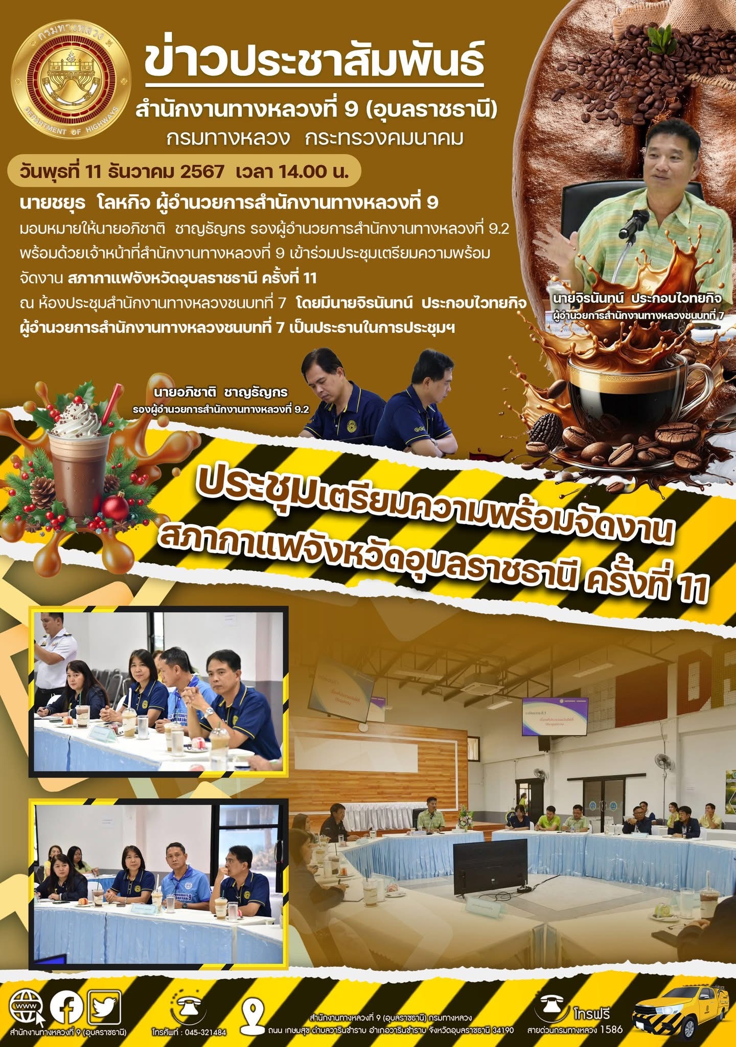 ร่วมประชุมเตรียมความพร้อมจัดงาน สภากาแฟจังหวัดอุบลราชธานี ครั้งที่ 11