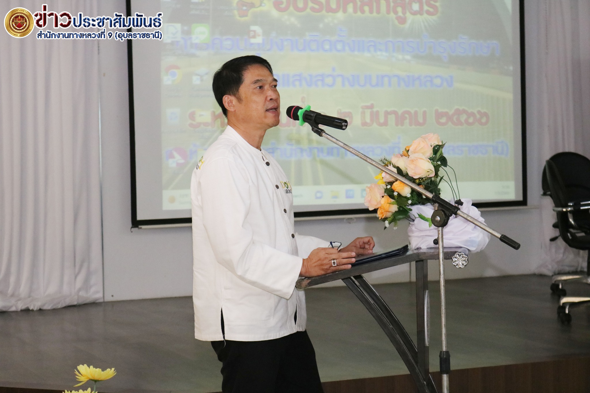 วันพุธที่ 1 มีนาคม 2566 เวลา 10.00 น. นายวิทวิส หล่อโชติอนันต์ รองผู้อำนวยการสำนักงานทางหลวงที่ 9 (อุบลราชธานี) เป็นประธานเปิดพิธี โครงการฝึกอบรมไฟฟ้าทางหลวง “หลักสูตรการควบคุมงานติดตั้งและบำรุงรักษาไฟฟ้าแสงสว่างบนทางหลวง” ให้บุคลากรของแขวงทางหลวง และเจ้าหน้าที่สังกัด สำนักงานทางหลวงที่ 9 (อุบลราชธานี) เพื่อให้บุคลากรผู้ปฏิบัติงานด้านไฟฟ้าของกรมทางหลวงได้มีความรู้ ความเข้าใจ มีทักษะในการตรวจสอบ บำรุงรักษา ซ่อมแซมงานไฟฟ้าได้อย่างมีประสิทธิภาพ ซึ่งมีวัตถุประสงค์ เพื่อให้ข้าราชการ พนักงานราชการ ลูกจ้างที่ปฏิบัติงานด้านไฟฟ้าของหน่วยงาน ได้มีความรู้ ความเข้าใจ มีทักษะในเรื่องการควบคุมงานติดตั้งไฟฟ้าแสงสว่างบนทางหลวง สามารถตรวจสอบ ซ่อมแซม และบำรุงรักษา เพื่อให้อยู่ในสภาพพร้อมใช้งานและปลอดภัย นอกจากนี้ยังจะได้รับความรู้เกี่ยวกับระเบียบ วิธีปฏิบัติ รวมถึงขั้นตอนการขอรับบริการจากการไฟฟ้าส่วนภูมิภาคที่เกี่ยวข้องกับงานไฟฟ้าแสงสว่างบนทางหลวง เพื่อให้สามารถดำเนินการได้อย่างรวดเร็ว ถูกต้อง และปลอดภัย เกิดภาพลักษณ์ที่ดีให้กับกรมทางหลวงต่อไปโดยได้เชิญวิทยากรที่มาให้ความรู้ในครั้งนี้ได้แก่
