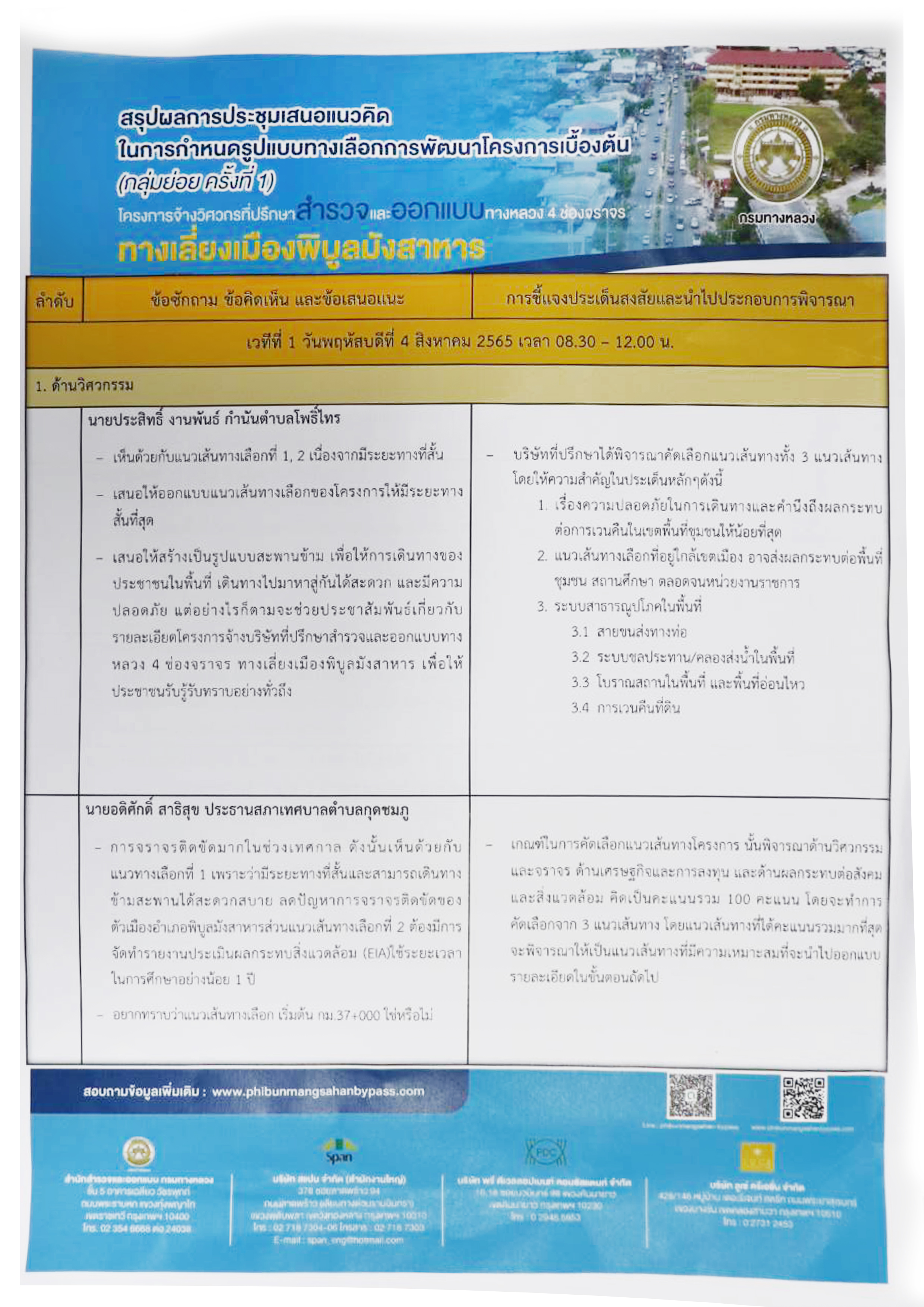 สรุปผลการประชุมเสนอแนวคิดในการกำหนดรูปแบบทางเลือกการพัฒนาโครงการเบื้องต้น (กลุ่มย่อย ครั้งที่ 1 )