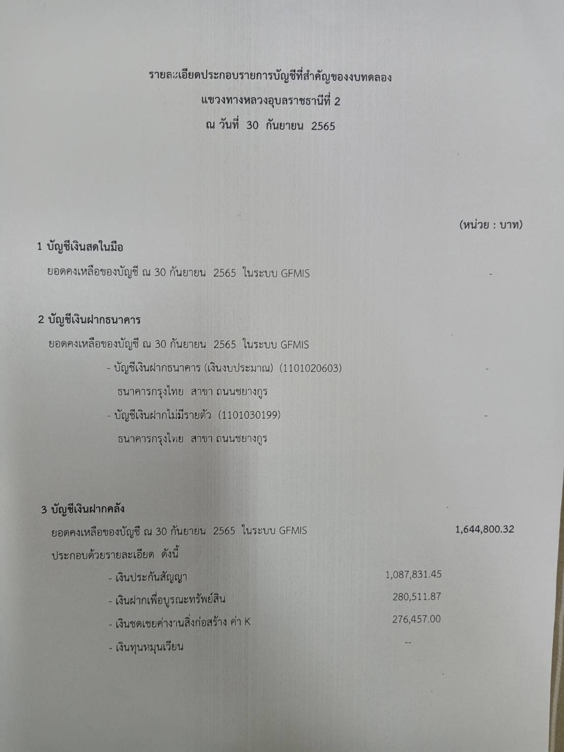 รายงานงบทดลองหน่วยบิกจ่ายรายเดือน รหัสหน่วยงาน 0806 กรมทางหลวง รหัสหน่วยเบิกจ่าย0800600081 แขวงทางหลวงอุบลราชธานีที่ 2 ประจำงวด 1 ถึง 1 ปี 2566