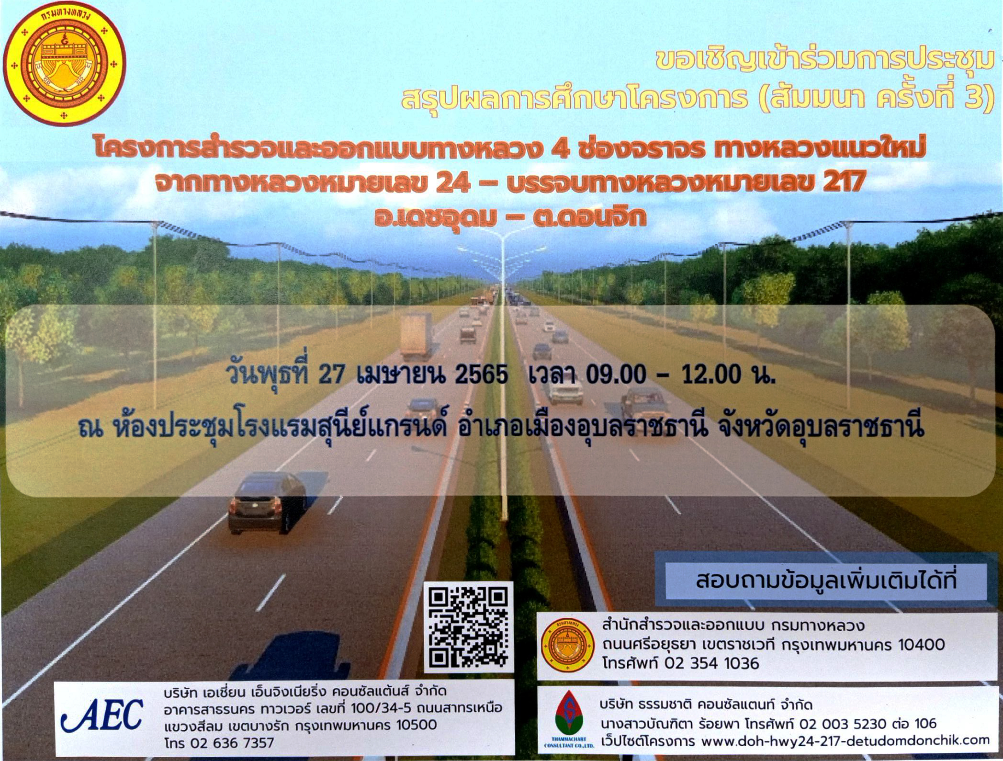 การประชุมเพื่อหารือมาตรการป้องกัน แก้ไข และลดผลกระทบสิ่งแวดล้อม (กลุ่มย่อย ครั้งที่ 2) โครงการสำรวจและออกแบบทางหลวง 4 ช่องจราจร ทางหลวงแนวใหม่จากทางหลวงหมายเลข 24 บรรจบทางหลวงหมายเลข 217 อ.เดชอุดม - ต.ดอนจิก