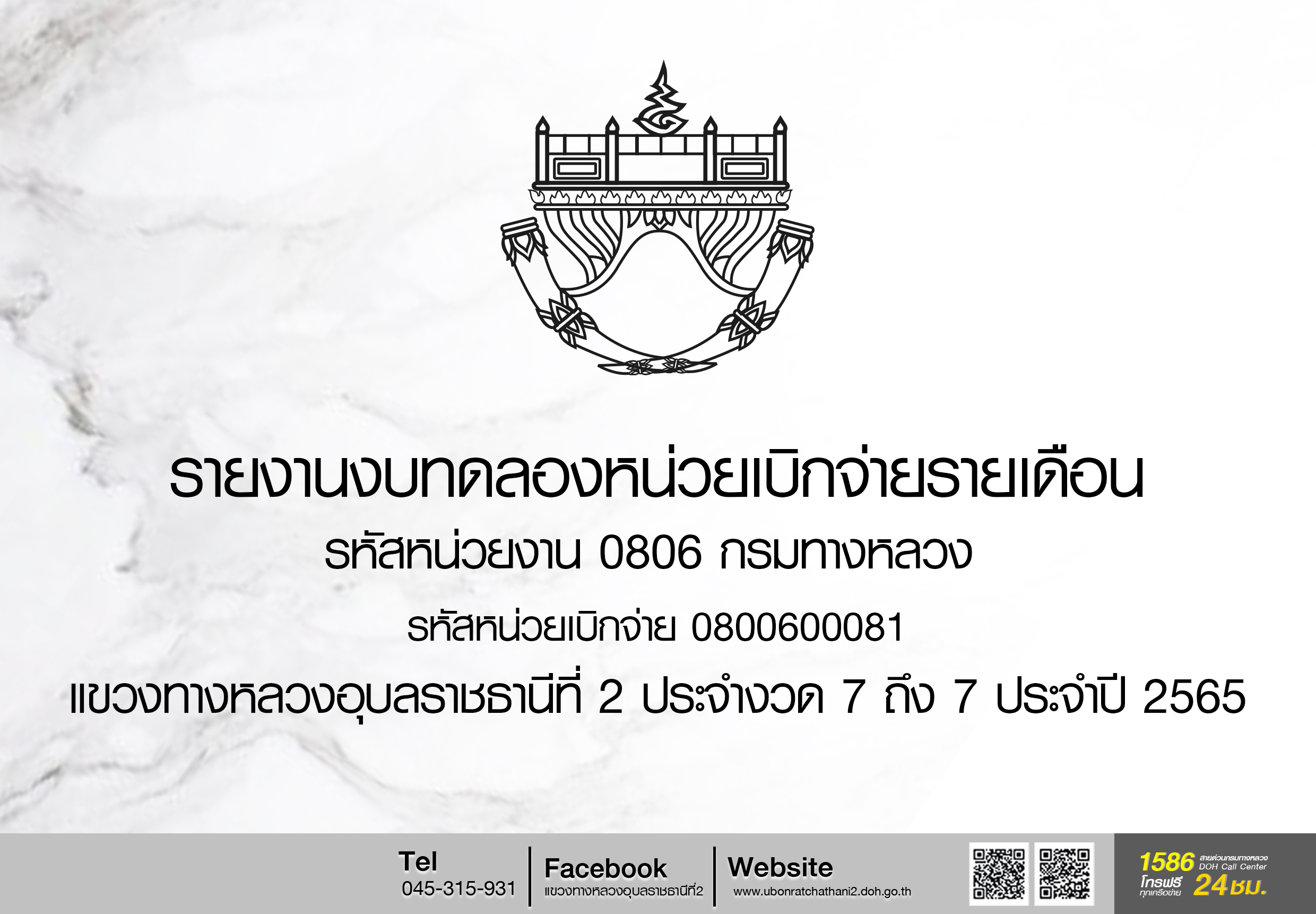 รายงานงบทดลองหน่วยเบิกจ่ายรายเดือน รหัสหน่วย 0806 กรมทางหลวง รหัสหน่วยเบิกจ่าย 0800600081 แขวงทางหลวงอุบลราชธานีที่ 2 ประจำงวด 7 ถึง 7 ประจำปี 2565