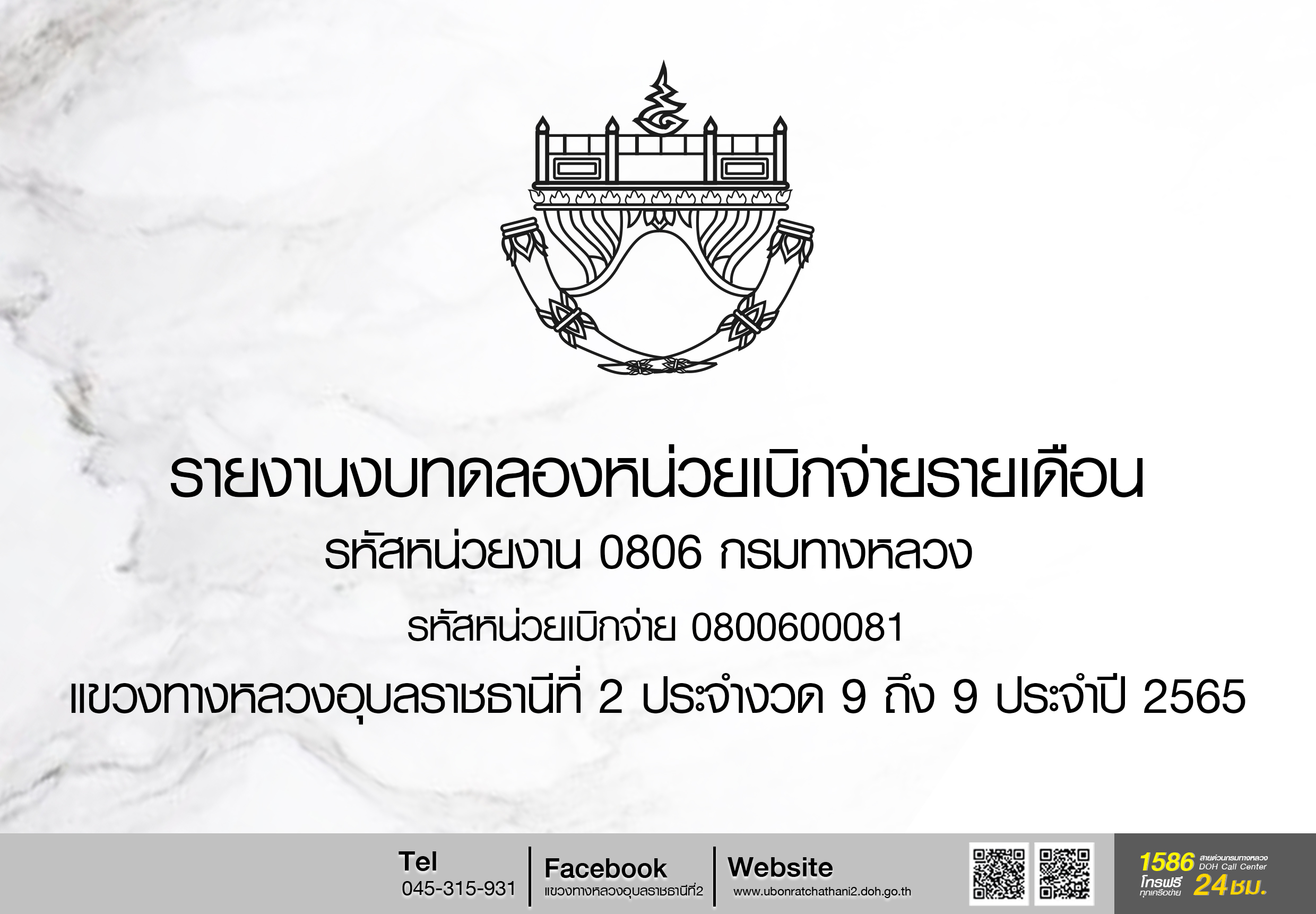 รายงานงบทดลองหน่วยบิกจ่ายรายเดือน รหัสหน่วยงาน 0806 กรมทางหลวง รหัสหน่วยเบิกจ่าย000000800600081 ขท อบ 2 ประจำงวด 3 ประจำปี 2565