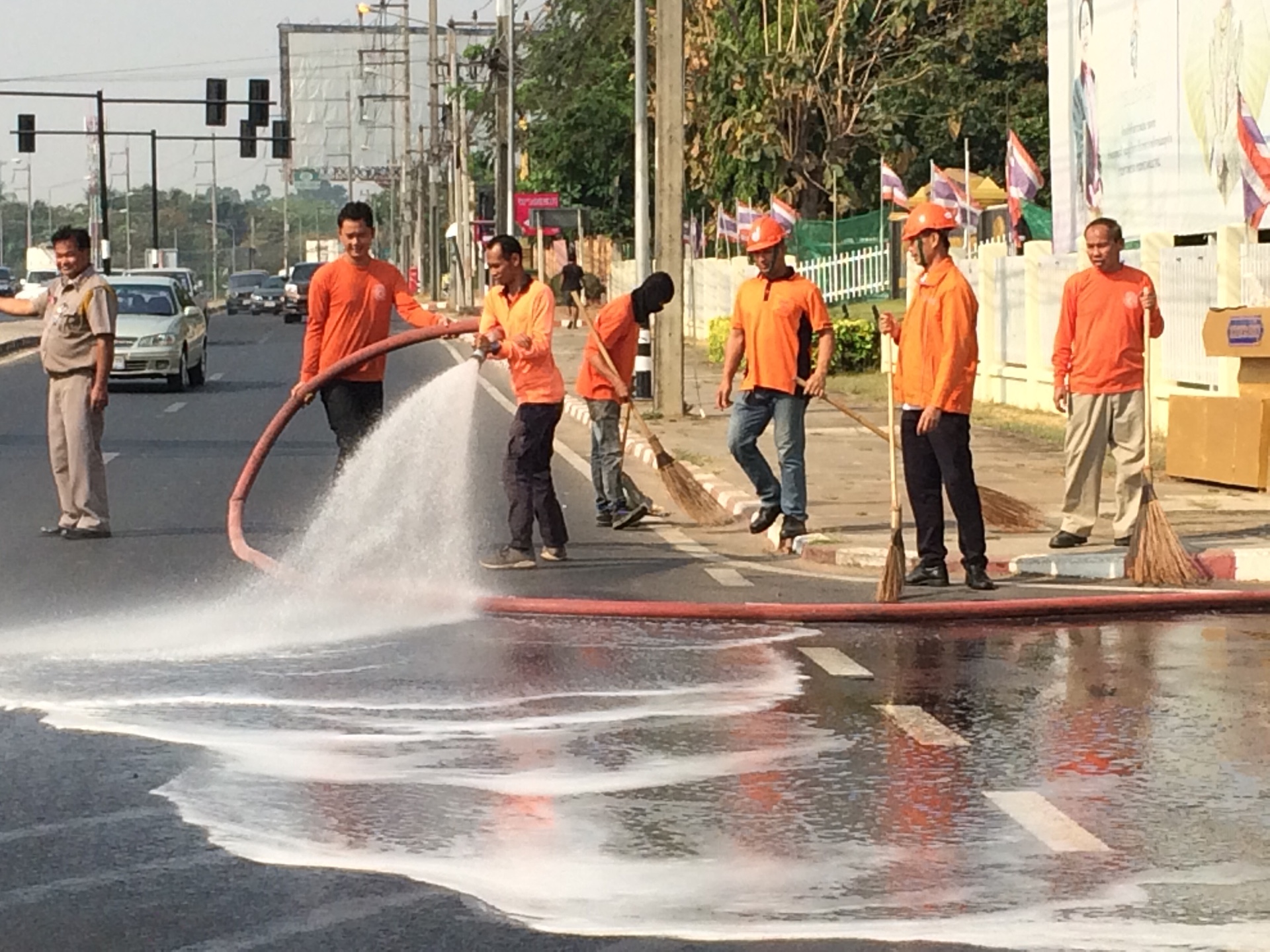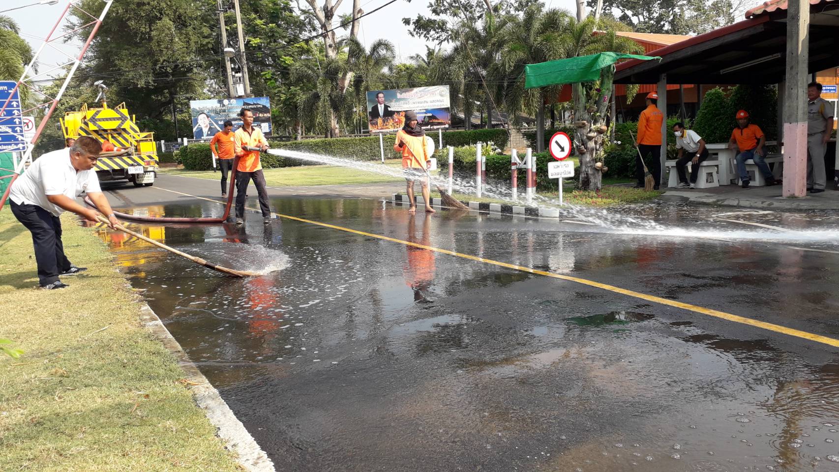 วันที่ 28 กุมภาพันธ์ 2562 เวลา 09.00 น. นายรัฐพงษ์ เลิศสุวรรณไพศาล ผู้อำนวยการแขวงทางหลวงอุบลราชธานีที่ 2 ได้มอบหมายให้ นายรัฐวิทย์ พจนประเสริฐ รองผู้อำนวยการแขวงทางหลวงอุบลราชธานีที่ 2 (ฝ่ายบริหาร ) นำคณะเจ้าหน้าที่ ดำเนินการเก็บกวาดและฉีดล้างทำความสะอาดถนนตามมาตรการ “One Transport ปลอดฝุ่น PM 2.5” ณ บริเวณหน้าสำนักงานแขวงทางหลวงอุบลราชธานีที่ 2